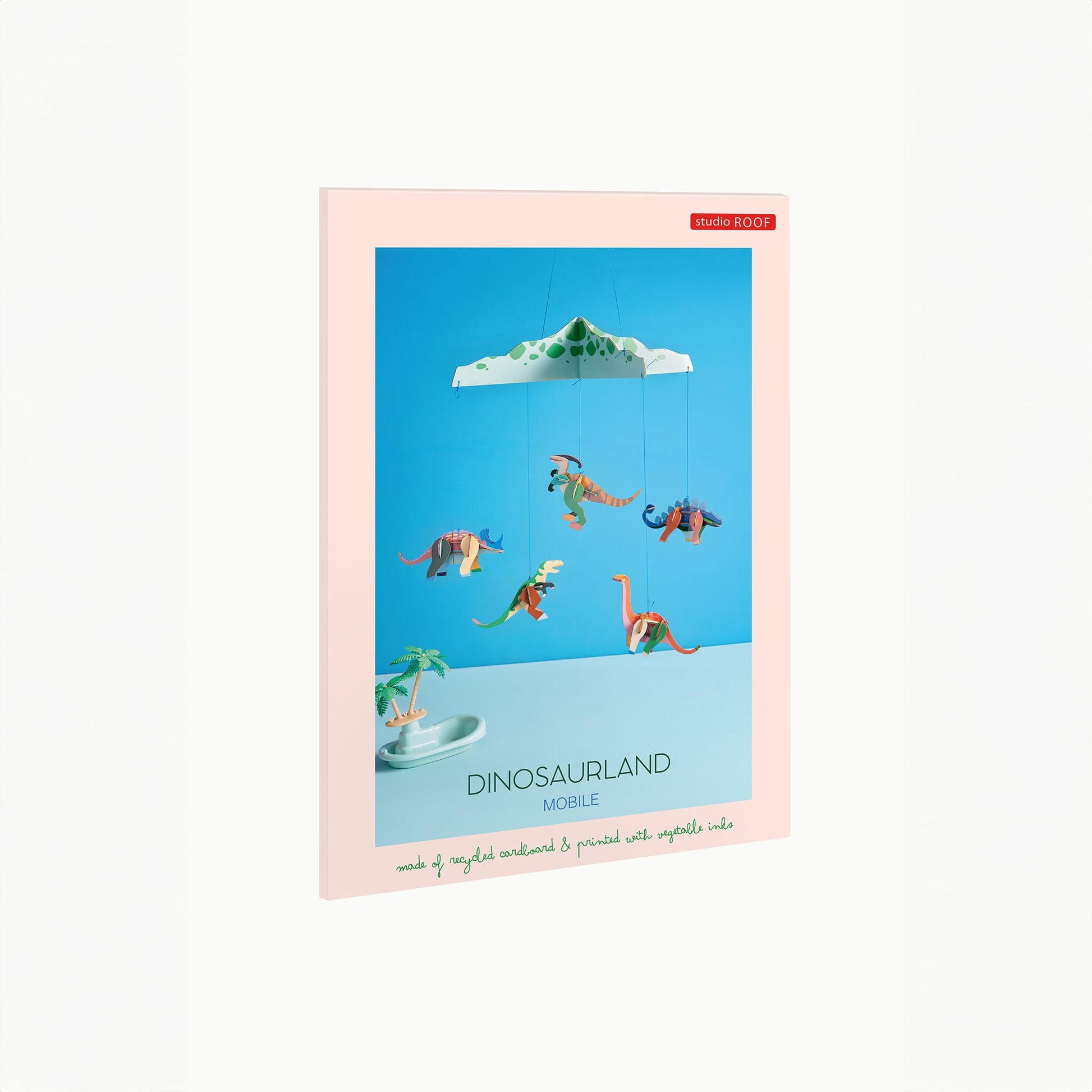 Made from recycled cardboard and printed with vegetable inks, it offers a sustainable decor option for your nursery. Arriving flat-packed, this mobile is easy to assemble and provides a fun and engaging experience for parents and children alike. Once built, it measures 36.2 x 36.2 x 8.1 cm (14.3" x 14.3" x 3.2"). Perfect for eco-conscious Canadian families, Dinosaurland combines creative design with environmental responsibility, making it an ideal recycled cardboard product for your baby’s room.
