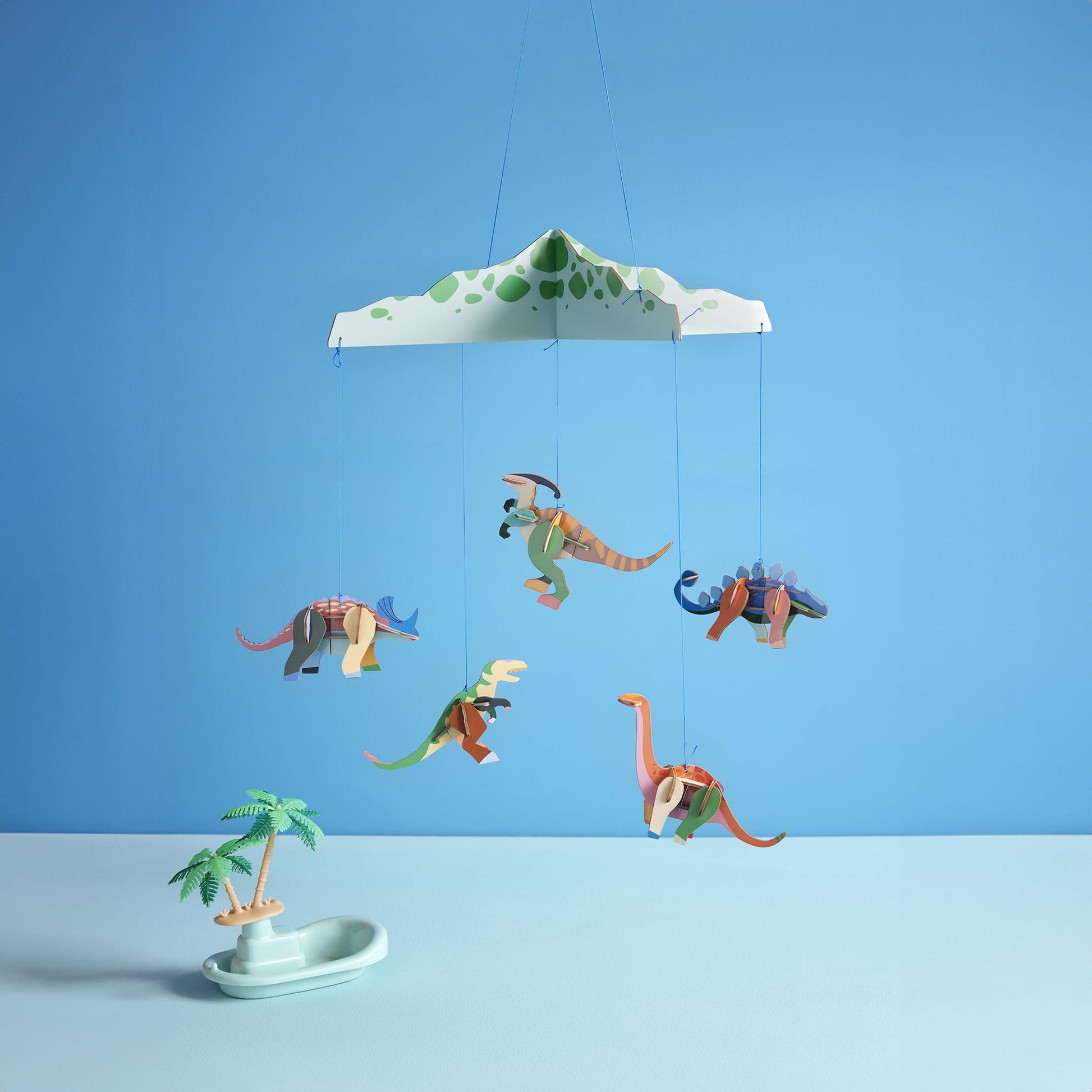 The Dinosaurland mobile by Studio Roof is a colorful and imaginative addition to any baby’s crib, designed to inspire sweet dreams and creative storytelling. This eco-friendly baby mobile features five playful dinosaurs that come to life as a 3D object.