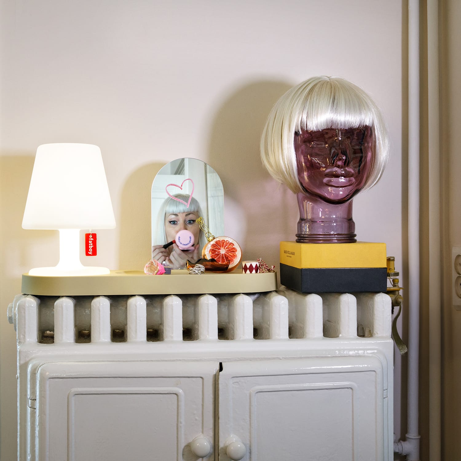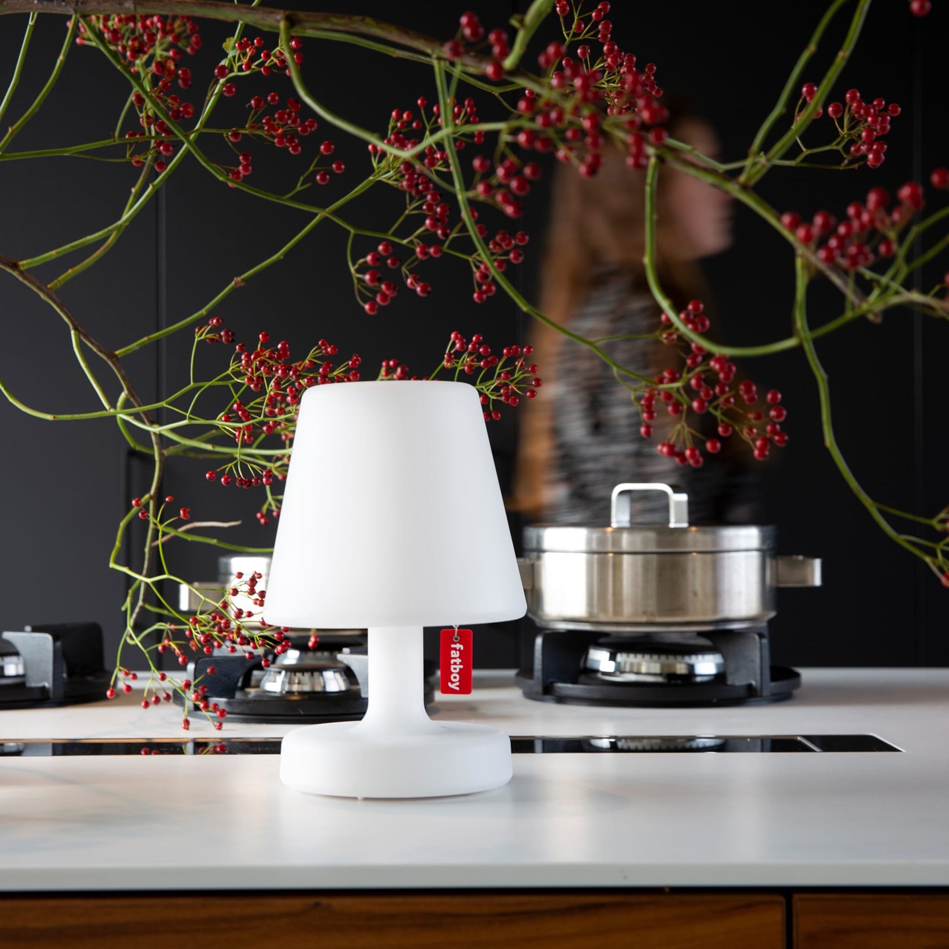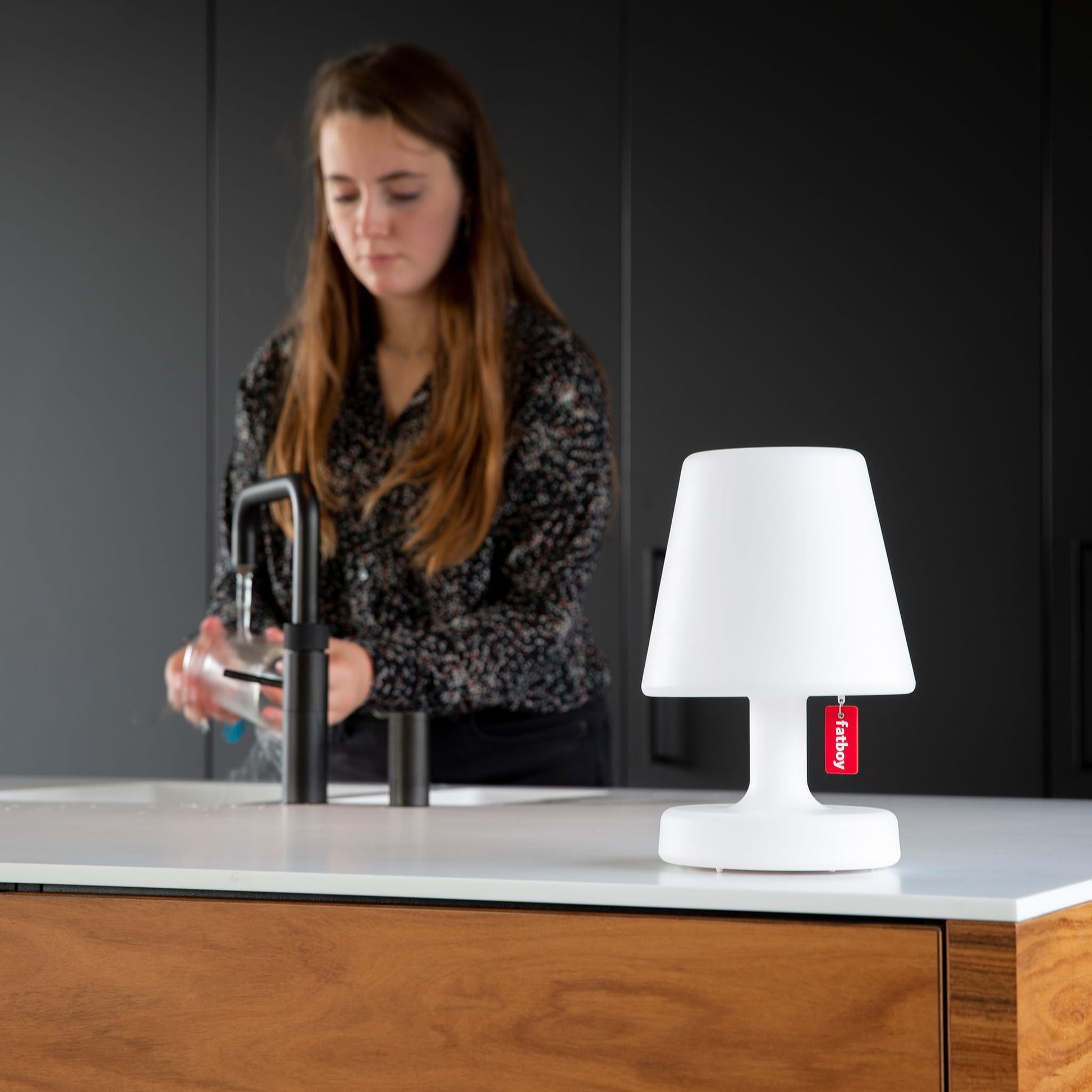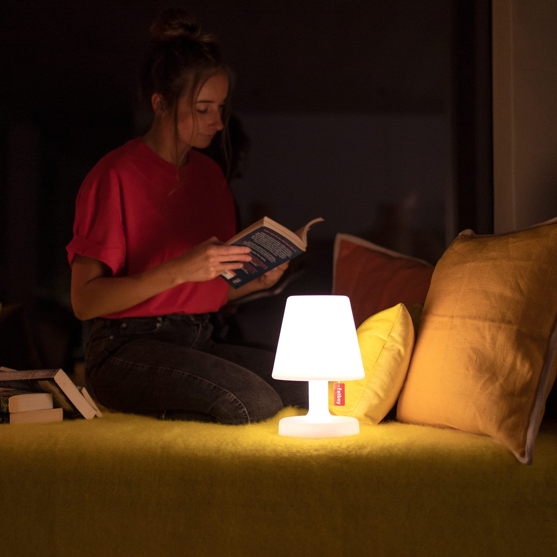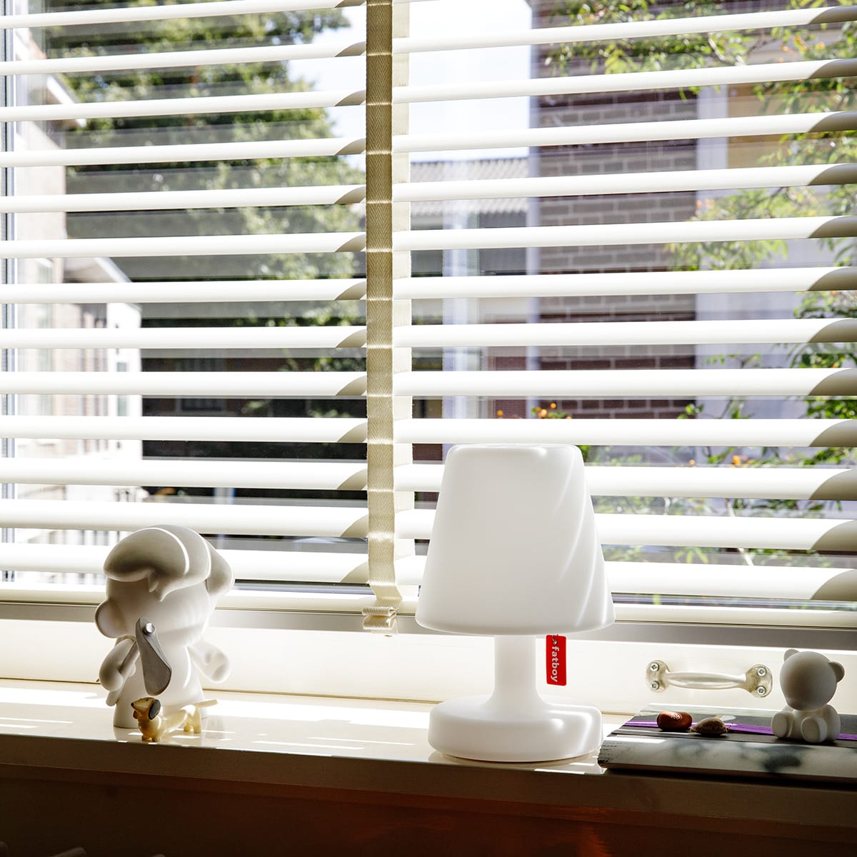 You can easily take your Edison the Petit with you wherever you go. This cordless LED lamp spreads its light generously from its shade to its base. Just pull the Fatboy label to switch the white table lamp on and off and to ramp up the brightness. The longer you pull it, the brighter it shines. And thanks to a handy memory function it remembers the last selected position when it’s switched on. Is that a stain on your lamp? Relax, you can easily wipe it off with a soft, damp cloth. And ensure your small table lamp stays a bright shade of white.