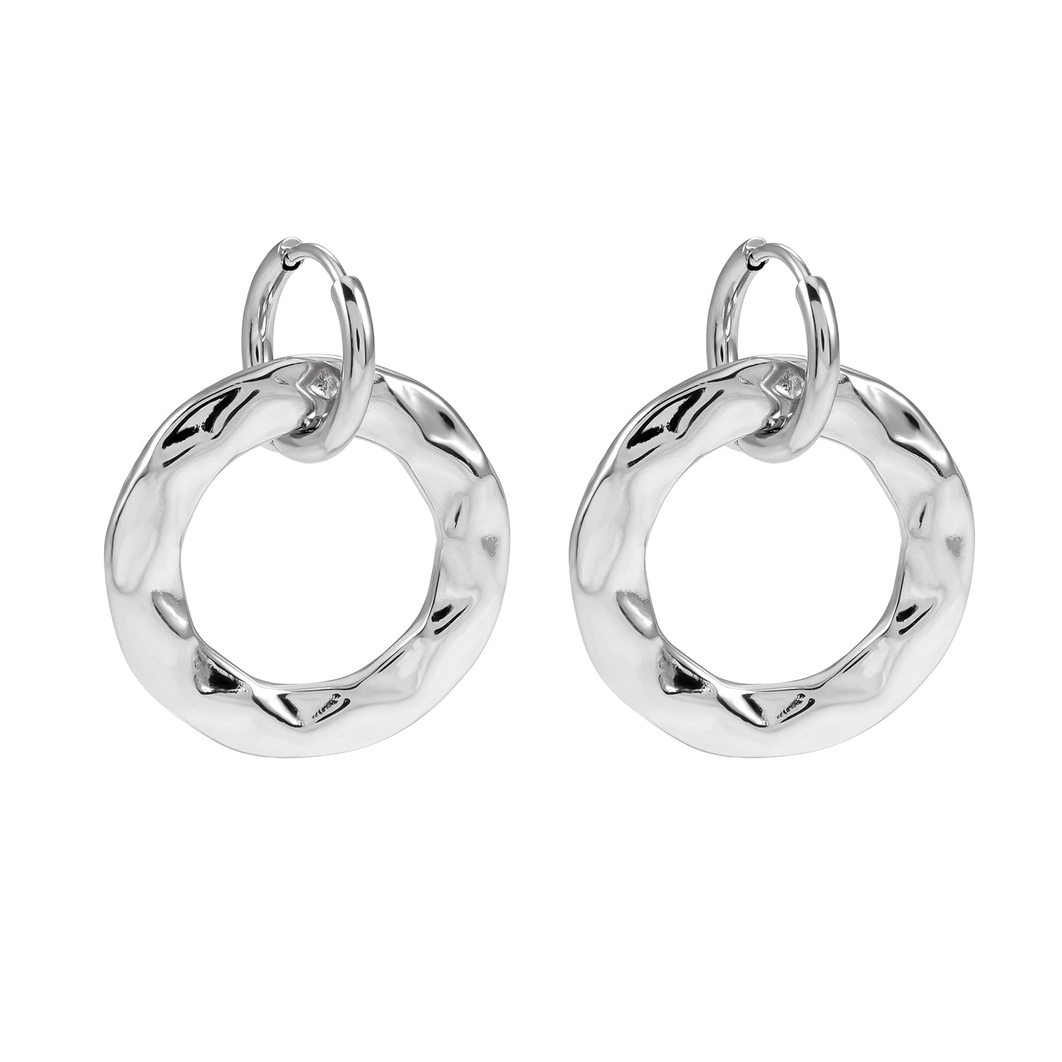 ELENA: Sculpted Texture Silver Toned (White Gold) Hoop Earrings