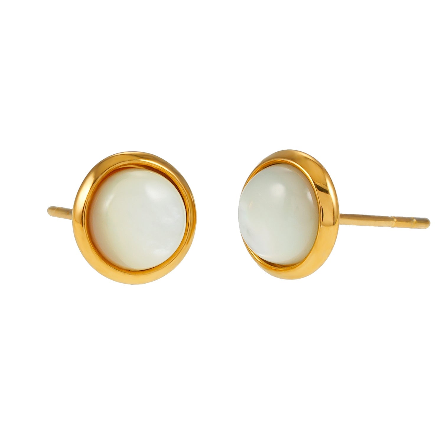 ENFIELD: Gold Rimmed Natural Shell Round Stud Earrings