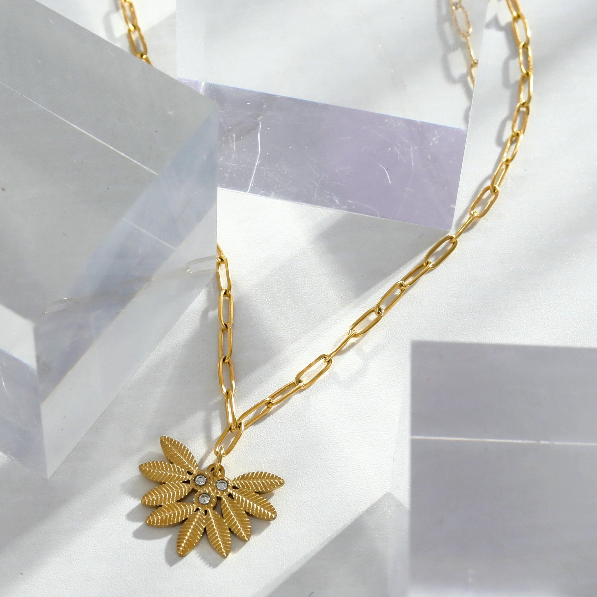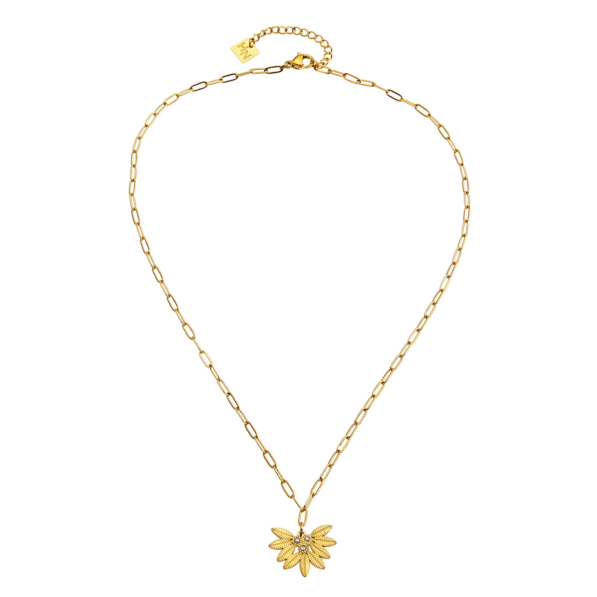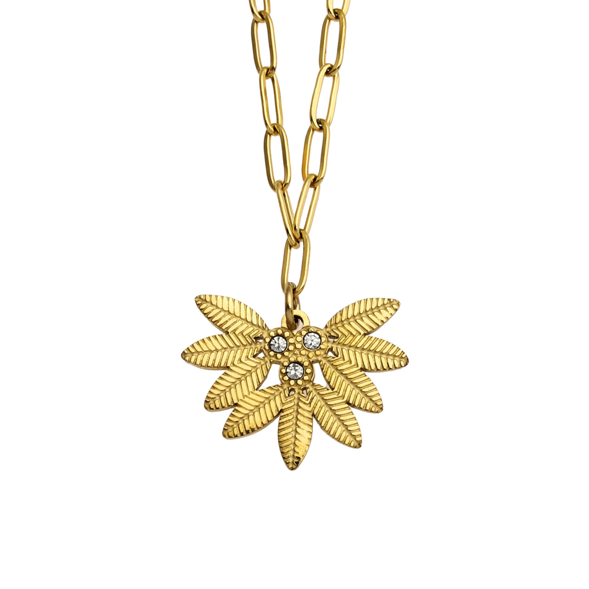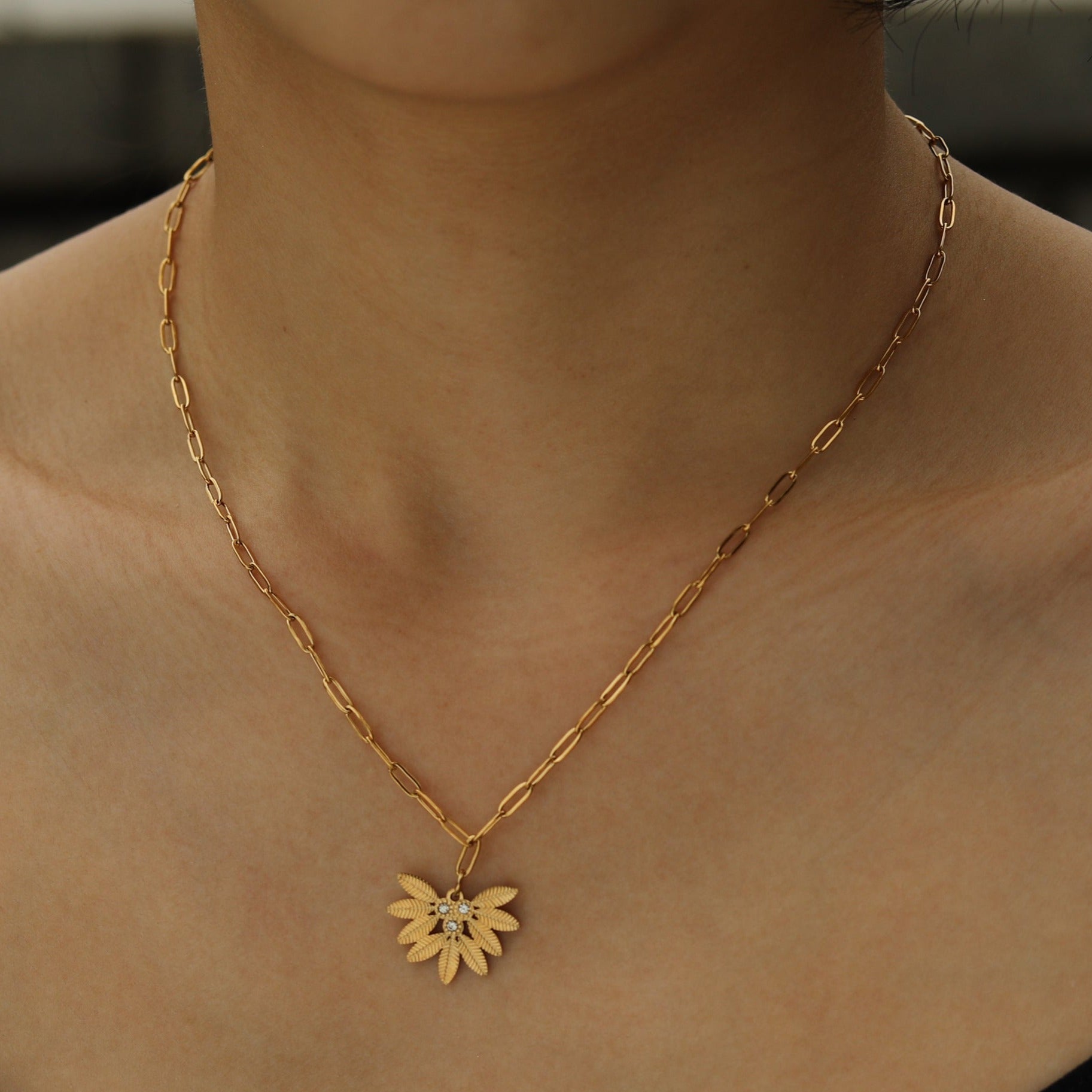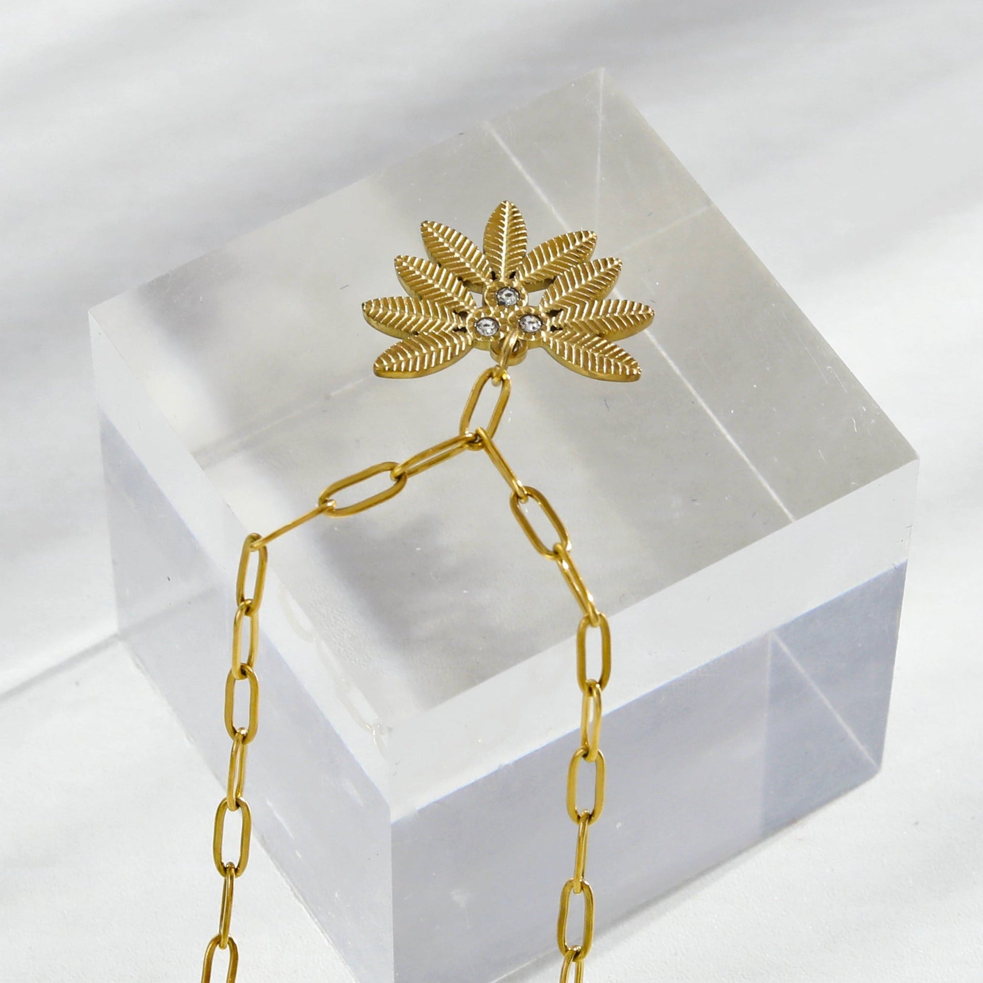 ENOLA Mini Paper Clip Chain with Leaves Design Zirconia Pendant in Gold