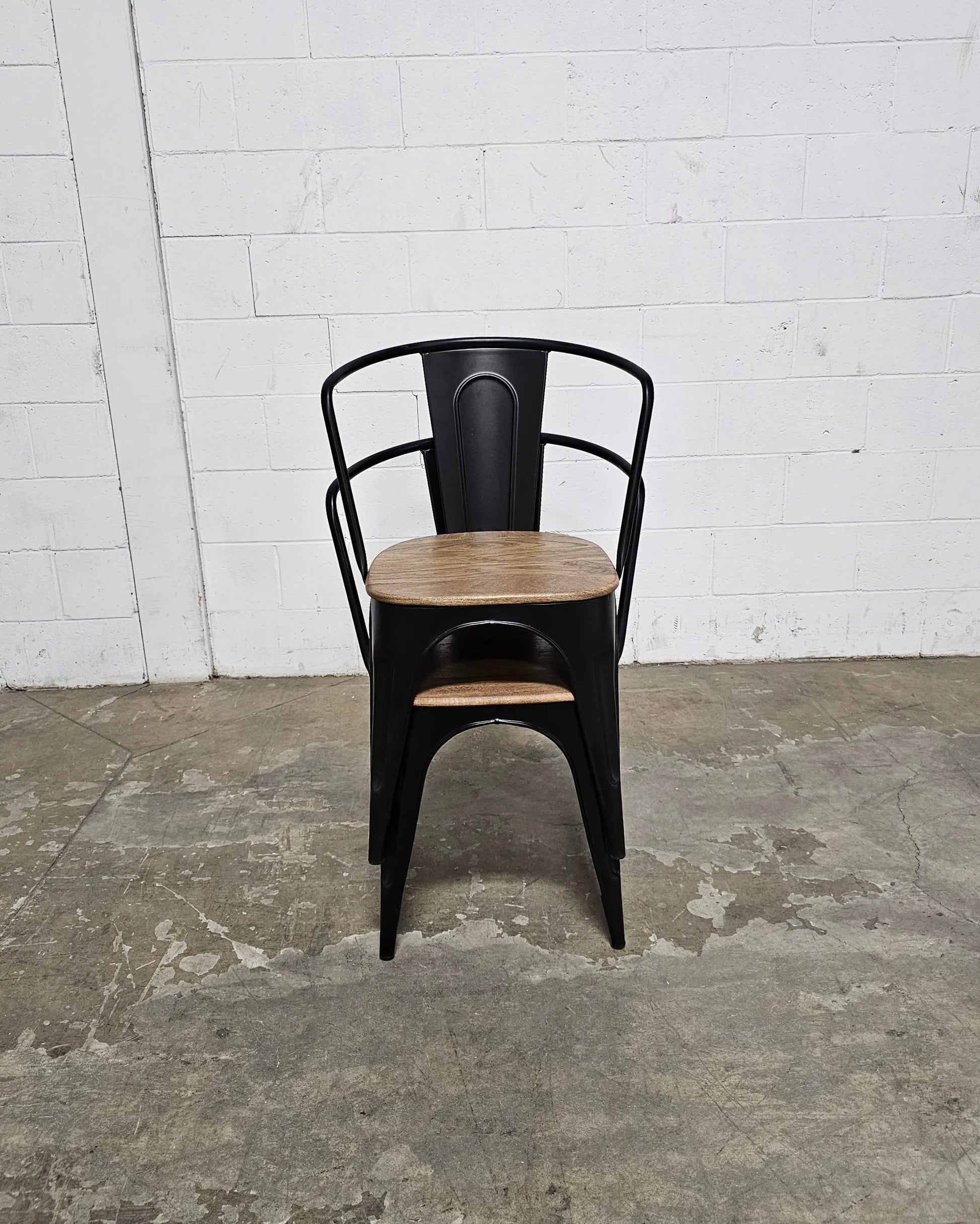 Ensemble de 2 Chaises Industry en acier noir et siège en bois de manguier