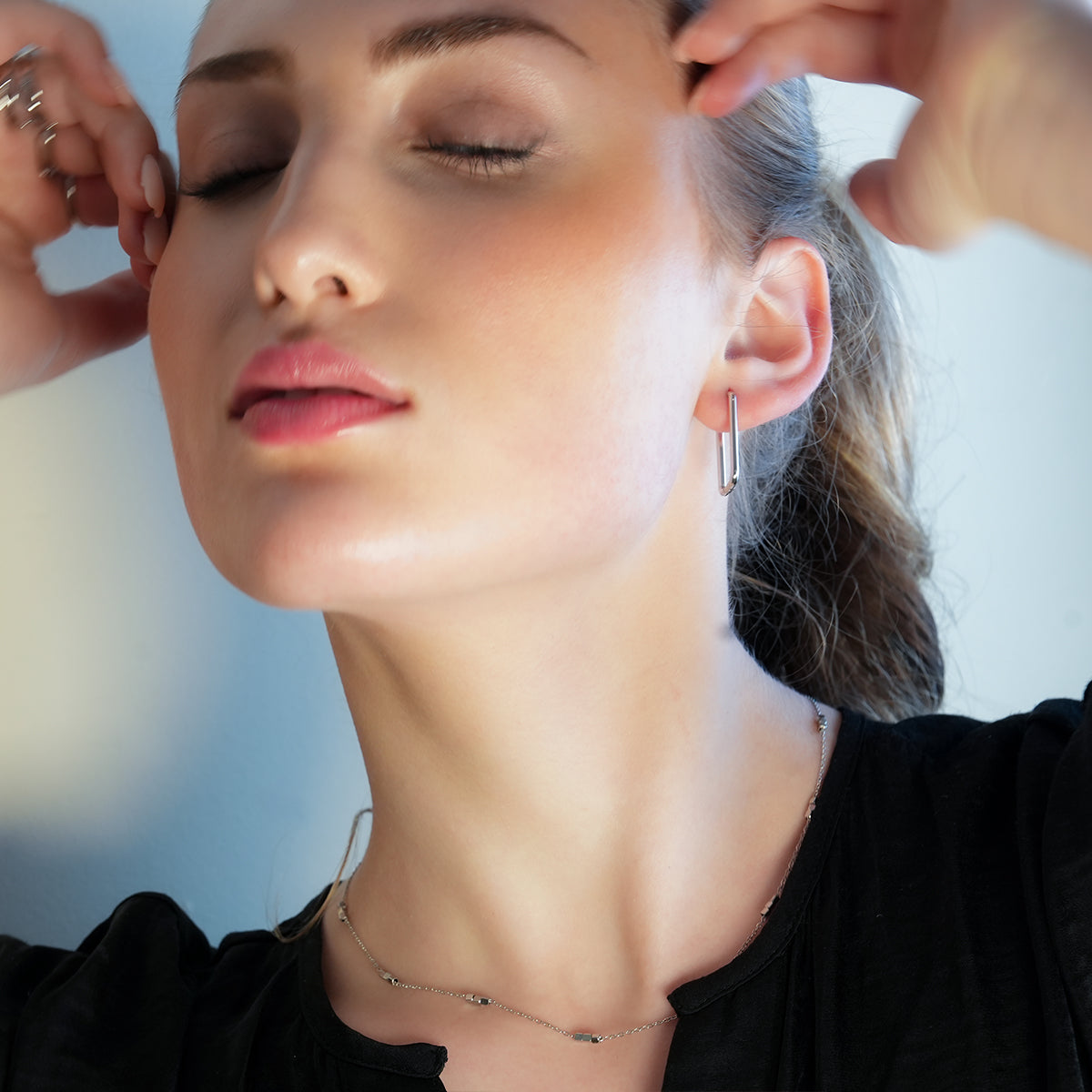 Introducing our enchanting dainty chain necklace adorned with trios of tiny square-beads, a testament to the harmonious blend of delicacy and sophistication.