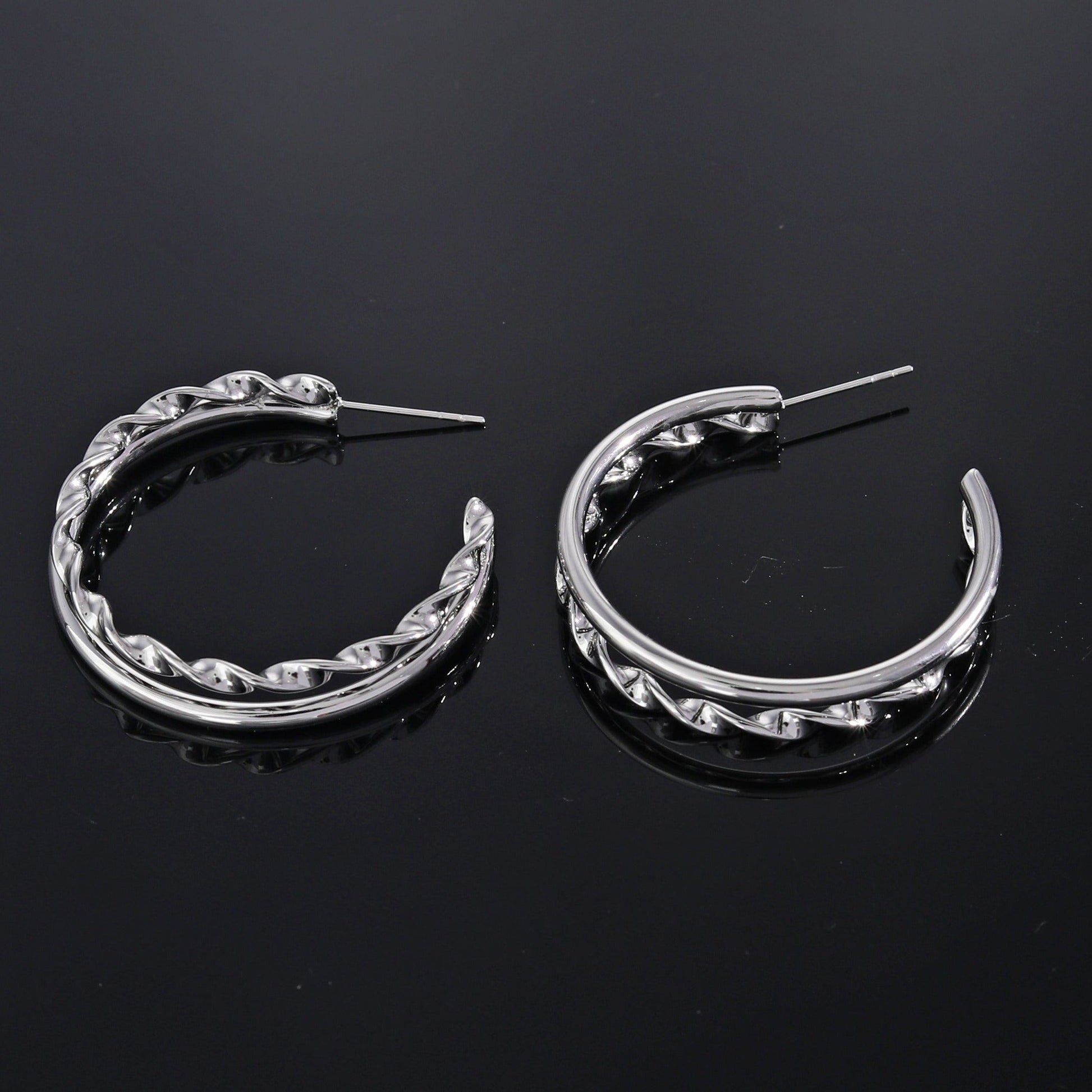 A pair of contrasting textured hoops twined up to deliver an effortless layered look. Cool and contemporary these unique earrings are the perfect accessory for any OOTD.