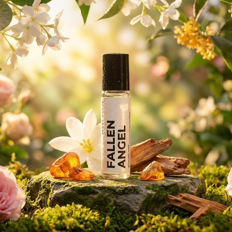 FALLEN ANGEL is a long-lasting, fruity-floral perfume with a soft green twist and a sophisticated edge. From the very first roll, you’ll notice the bright, peachy sweetness of jasmine, rose, and osmanthus, creating a fresh and energizing impression.
