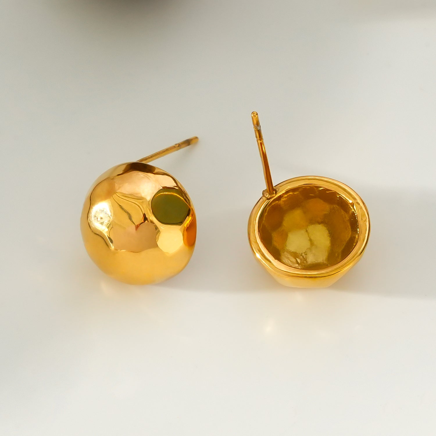 FELTHAM Gold: Contemporary Hammered Look Stud Earrings