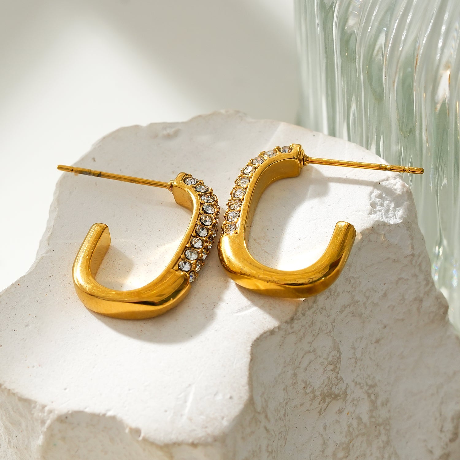 FIRLE Gold: Partial Pavé Zirconia Oval Hoop Earrings