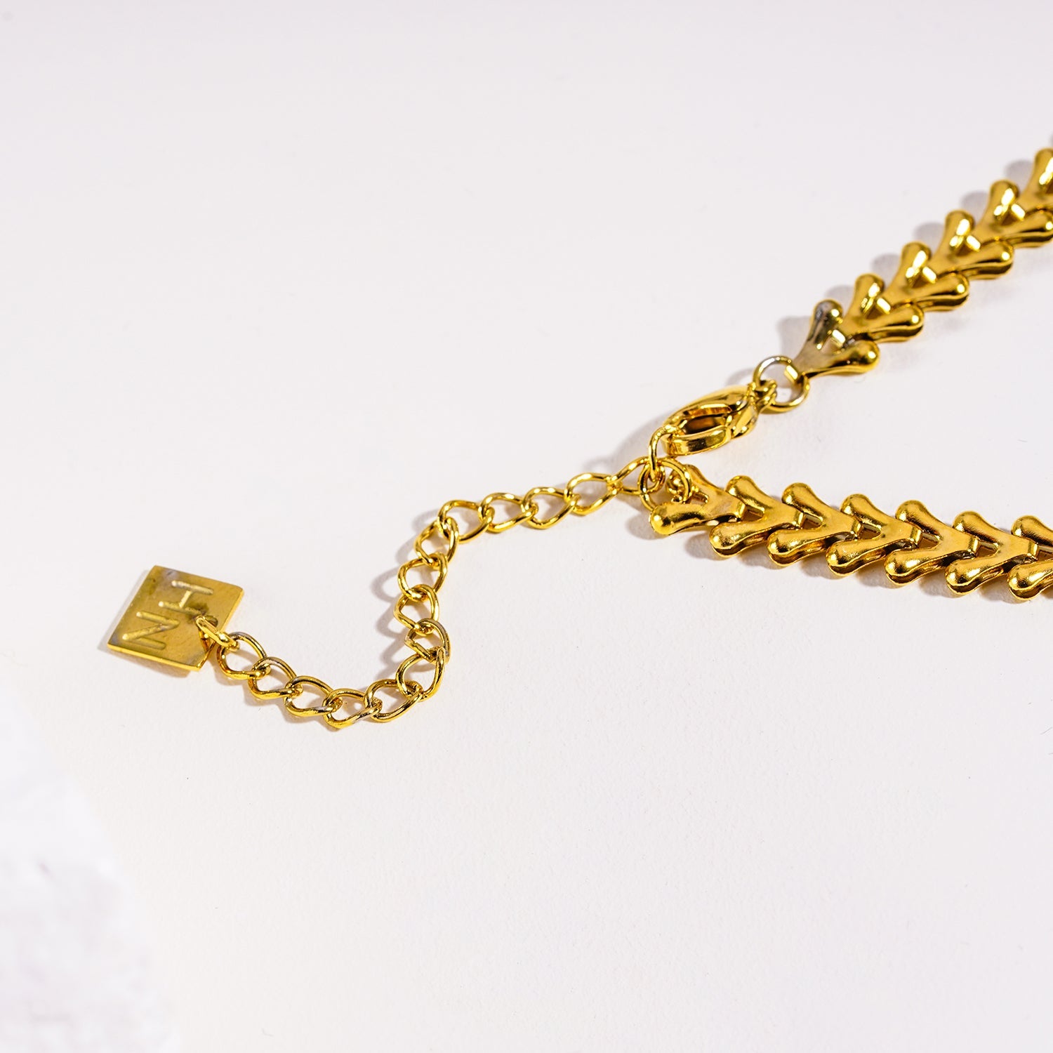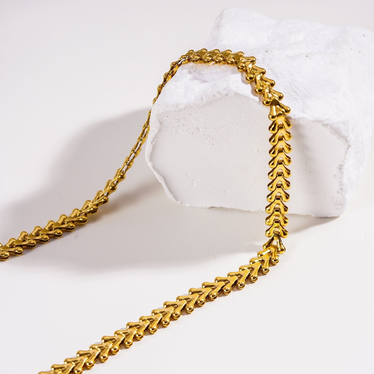 Each link in the bracelet showcases an intricate abstract crest shape, reminiscent of the opulence and sophistication of bygone eras. The meticulously designed crests evoke a sense of nostalgia while maintaining a modern edge, making this bracelet a perfect accessory for those who appreciate both classic and contemporary styles.