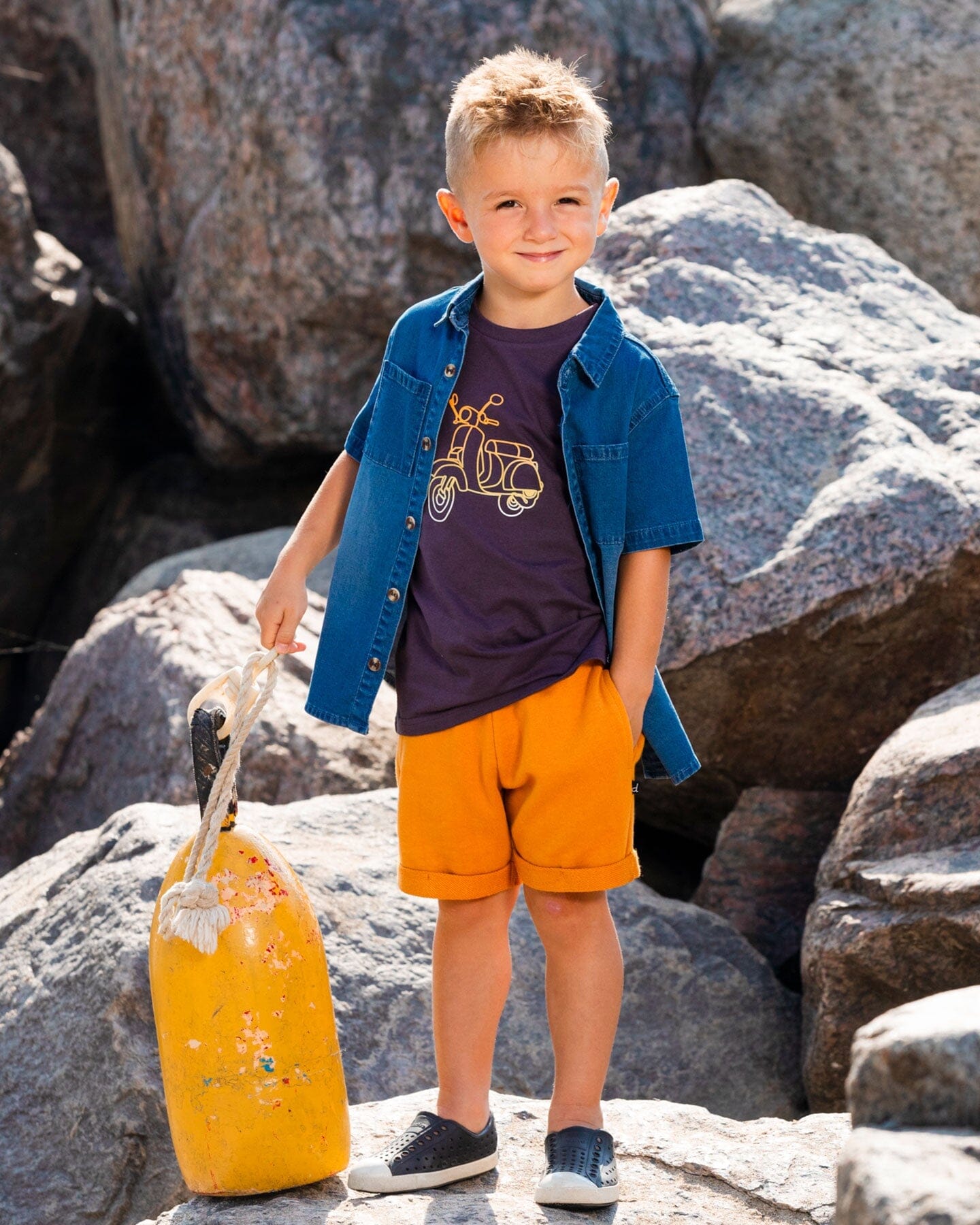 Our French Terry Short Vibrant Orange is soft, comfy, and made for long days of play! This versatile sweatshort features a drawstring waistband, side seam pockets, and cuffed legs. Mix and match it with any top from our A Vespa Stroll collection!