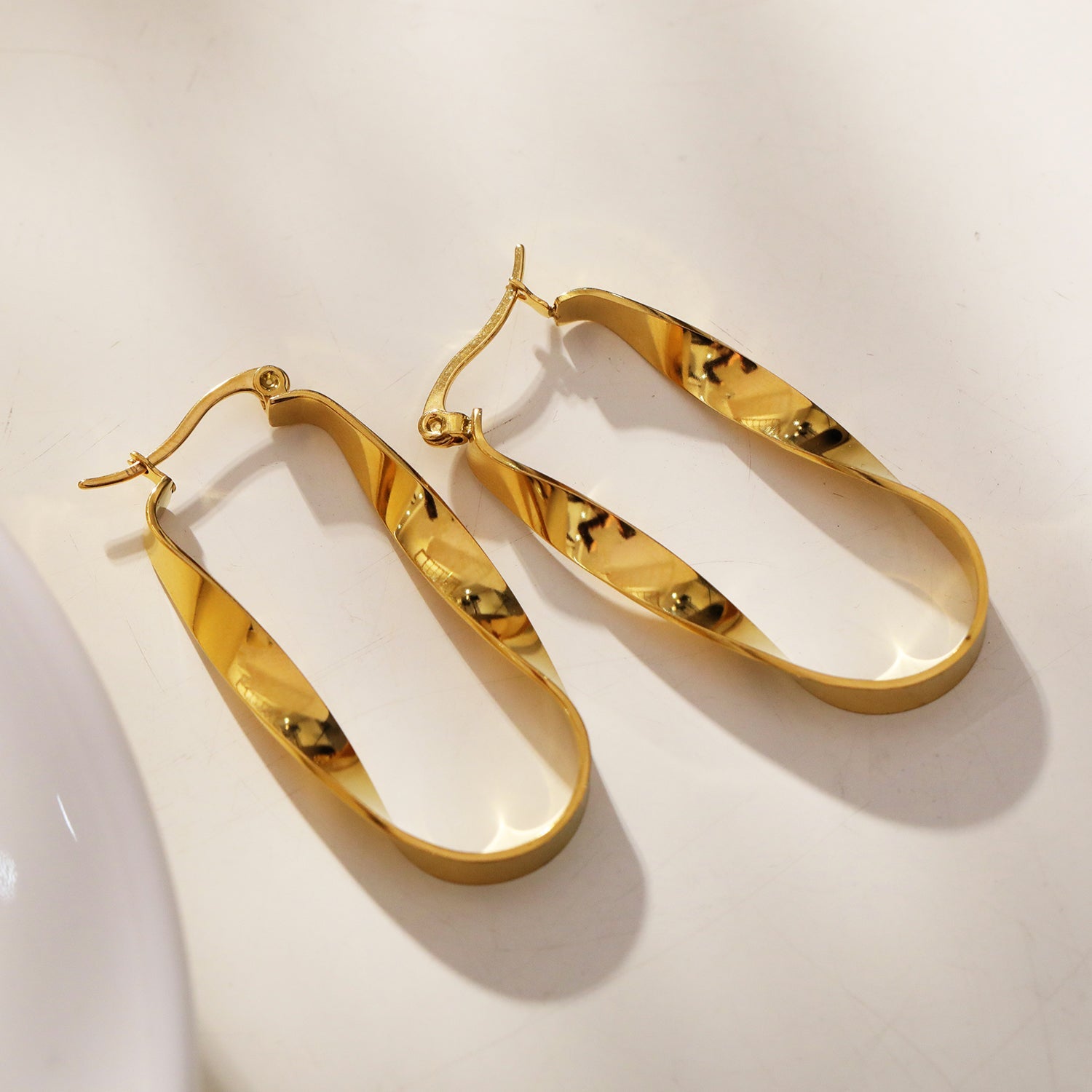 GISELA Twisted Abstract Oblong Semi-Statement Hoop Earrings