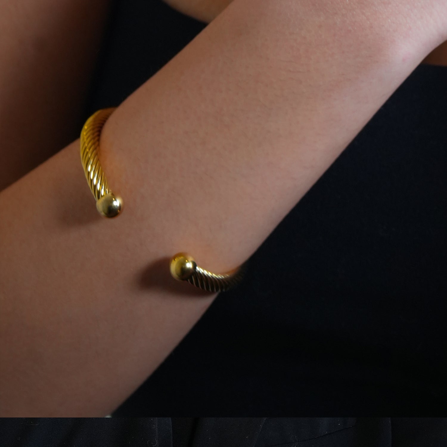 At each end of the bracelet, finely balanced ball beads add a touch of refinement and balance to the overall design. Wear solo for a minimalist statement or layered with other bracelets for a personalized stack.