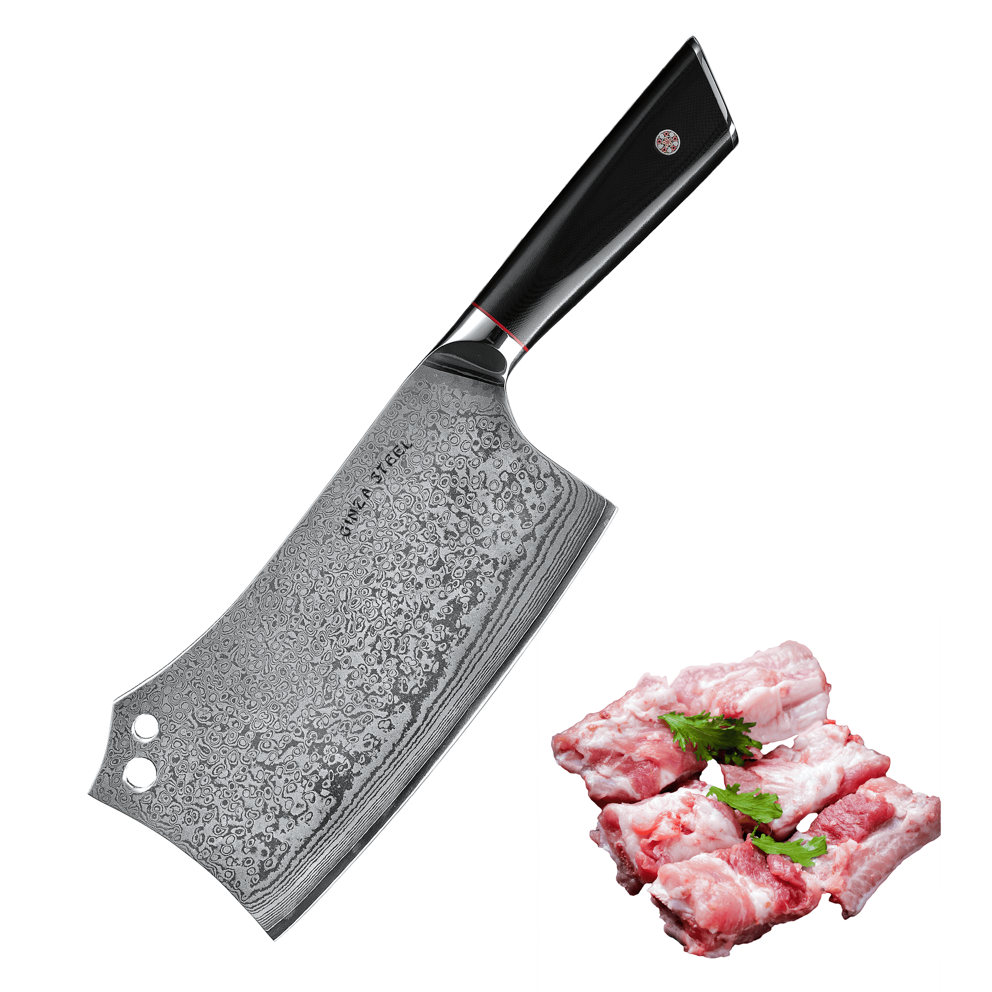 Explore the exceptional HAGAKURE Y Cleaver Knife, a 7" masterpiece crafted from premium Damascus AUS 10 Steel. The G10 handle ensures a comfortable grip and optimal control in your kitchen adventures. Elevate your cooking experience with this versatile and razor-sharp cleaver, perfect for tasks ranging from vegetable prep to expert meat cutting. Unleash the power of precision with the HAGAKURE Y Cleaver Knife – where form meets function seamlessly. Transform your cooking experience today!