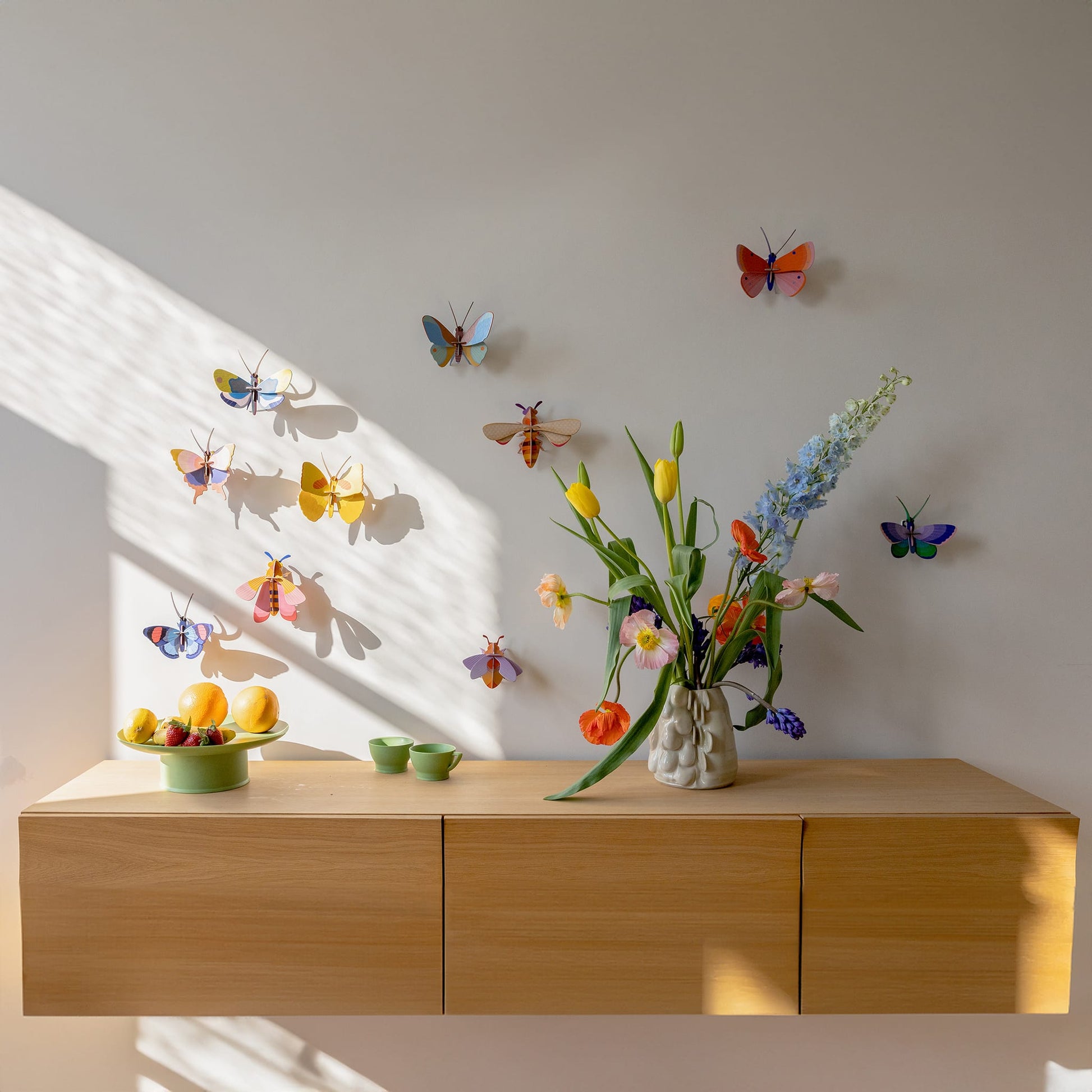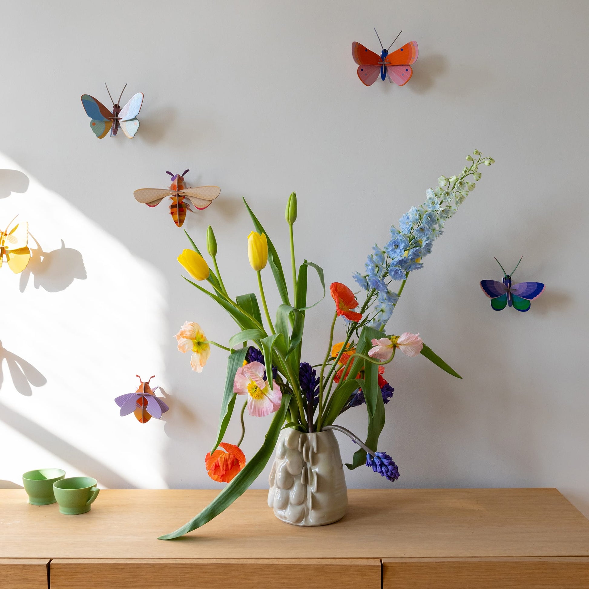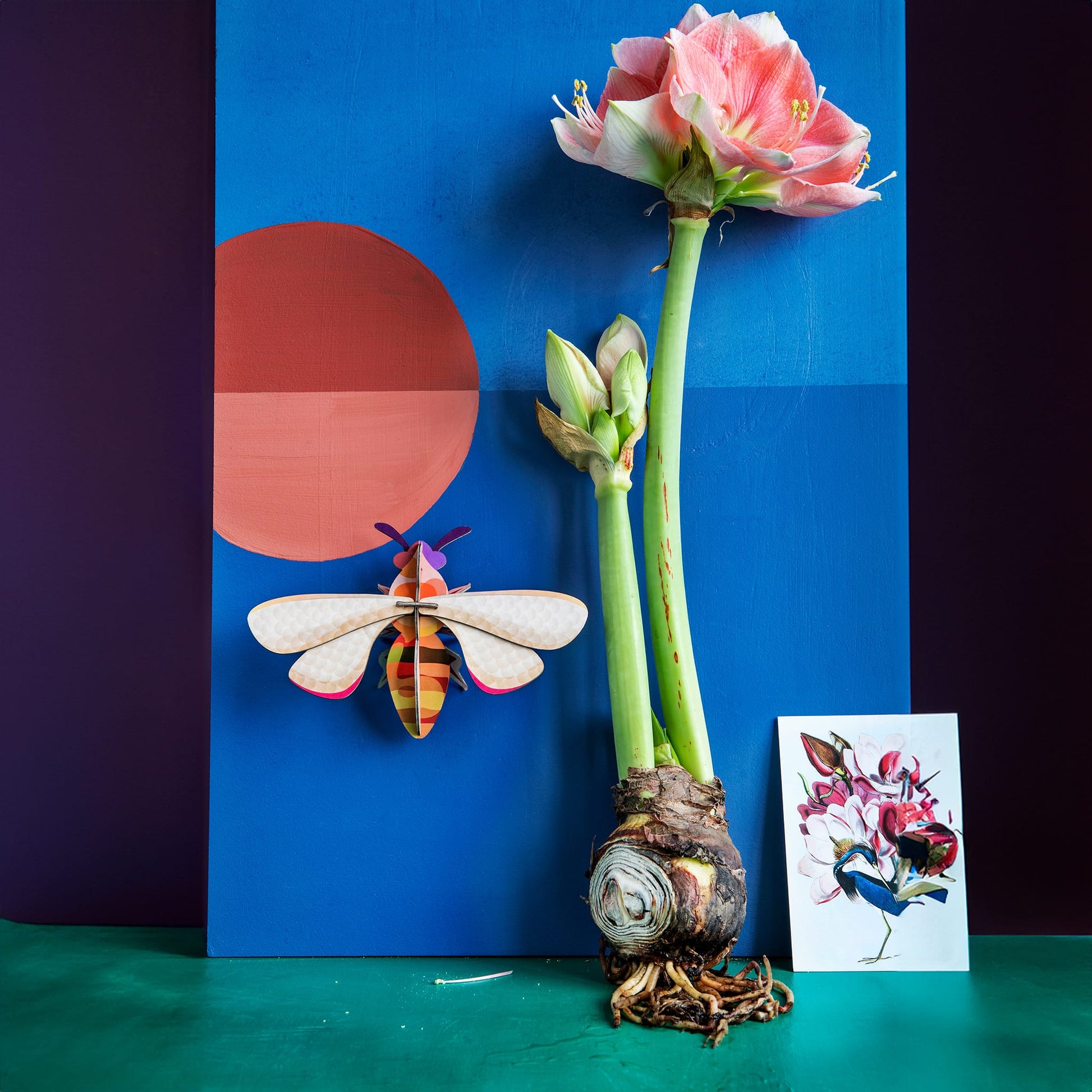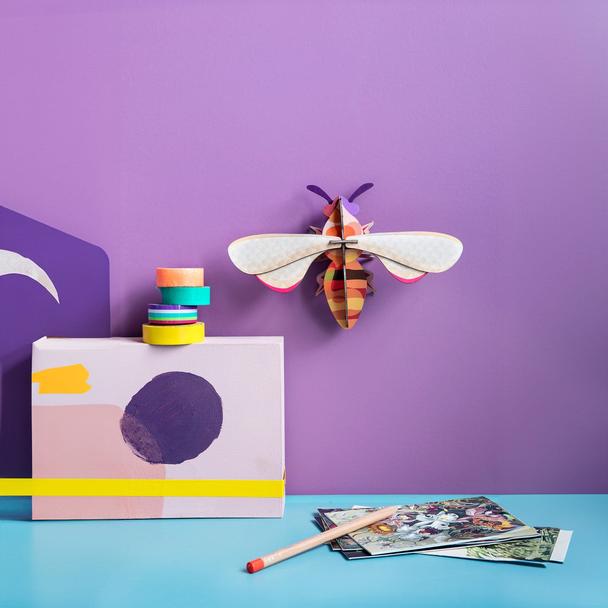 The Honey Bee by Studio Roof is a delightful ornament that brings a touch of nature-inspired art into your home. This 3D wall art piece is crafted from recycled cardboard and printed with vegetable inks, offering an eco-friendly and creative design. Easy to assemble, the Honey Bee can be hung in a plant, a Christmas tree, or on a lamp, adding a vibrant and whimsical touch to any setting.