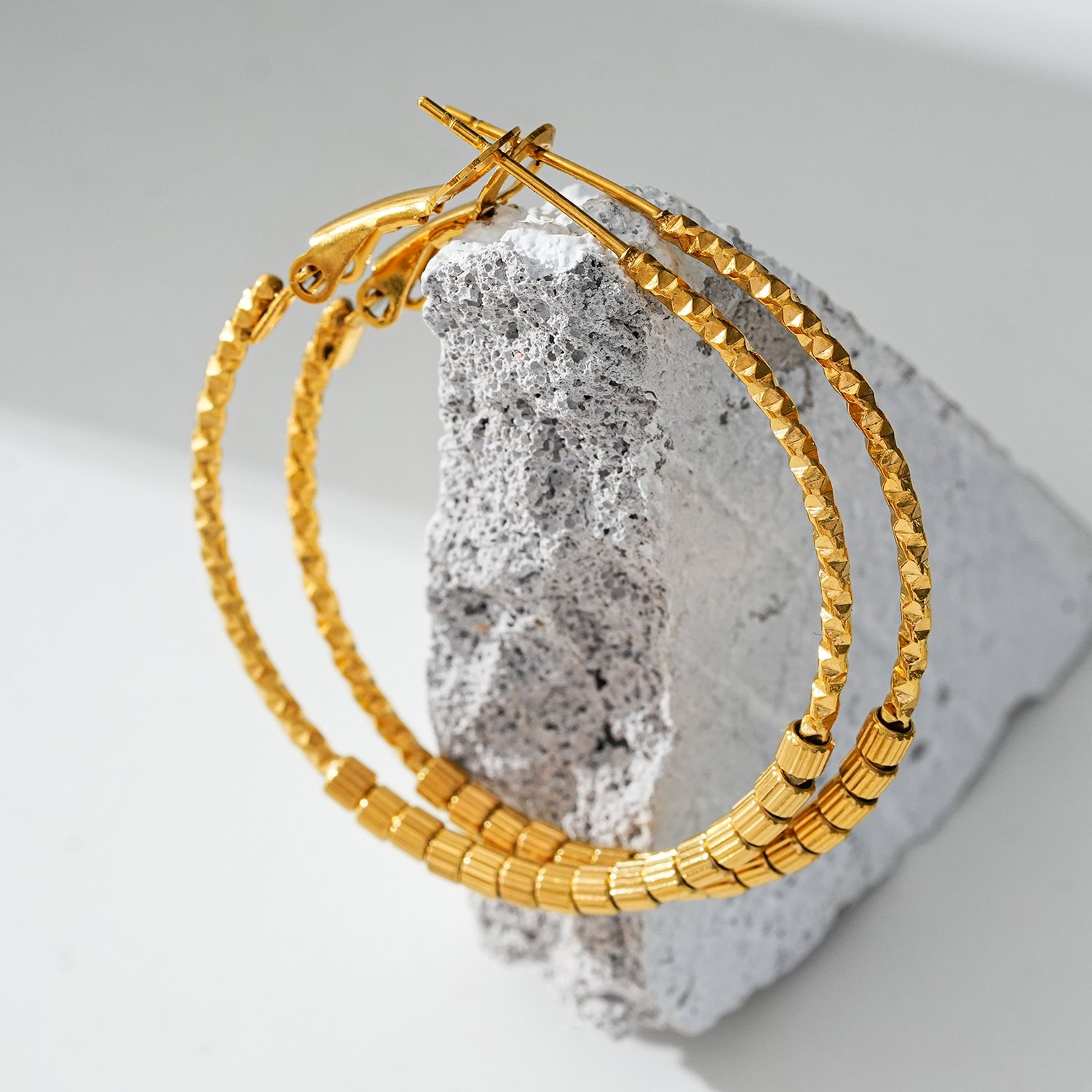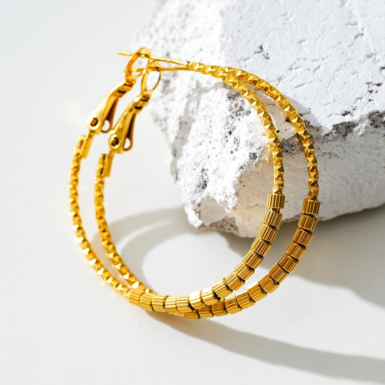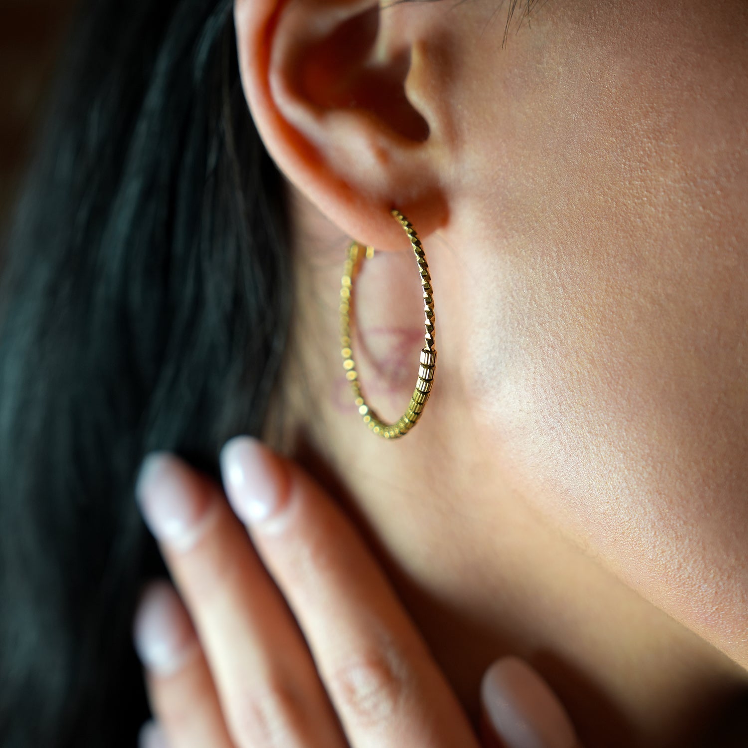 Industrial Chic hoops that reflect contemporary elegance and edgy sophistication, adding dimension and intrigue to any ensemble.