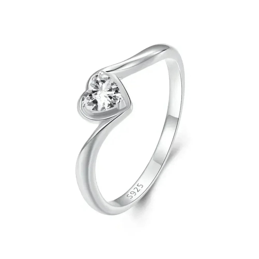 925 Sterling Silver Heart Moissanite Solitaire Ring