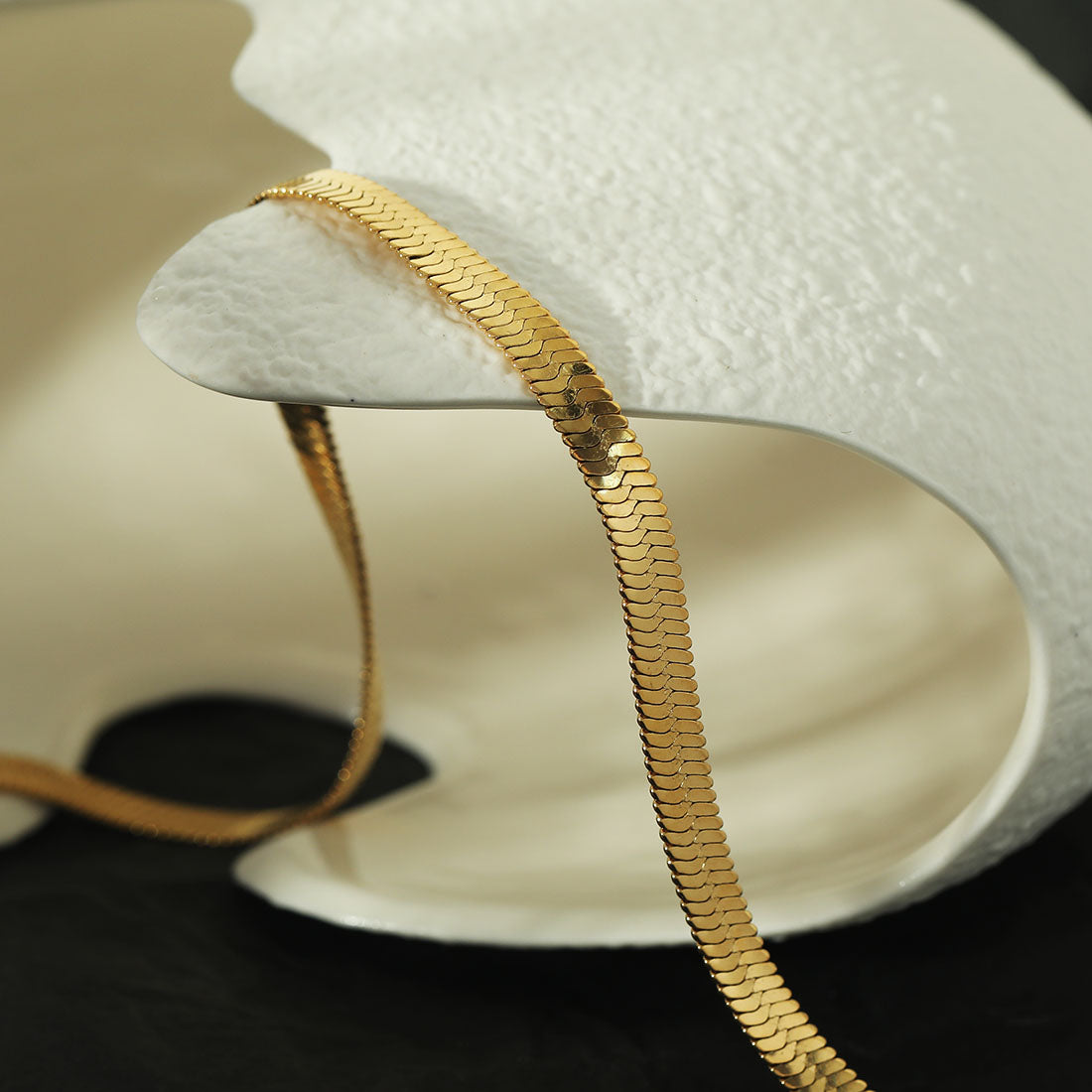 Comfortably light and layerable, wear this contemporary gold snake chain on its own or in a layered set.