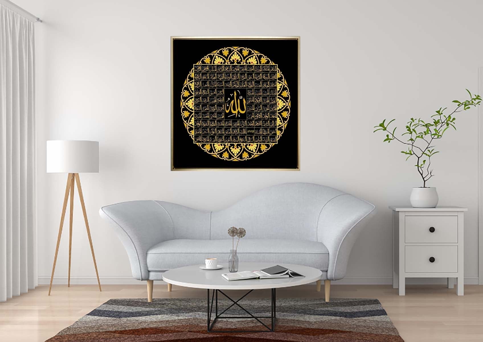 With 99 names of Allah beautifully showcased in this canvas print, you'll have a daily reminder of His attributes and blessings. Perfect for Muslim homes looking for a meaningful and elegant decoration.