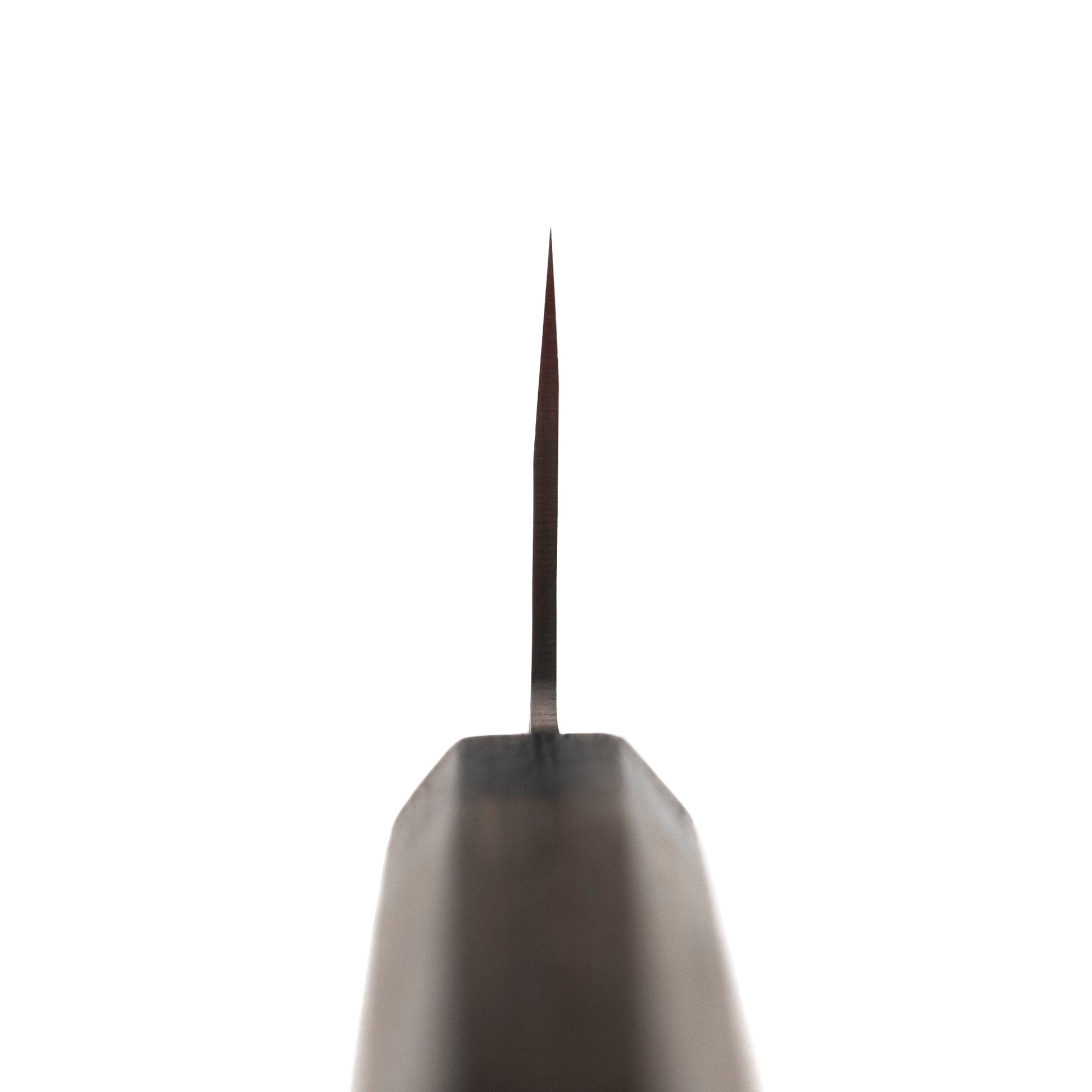 Ittetsu is the shops house brand and we've been working for a long time to find high performing, affordable knives to offer our customers. These are made for us in the Echizen region. The name Tafu translates to "tough" and they're just that! A full stainless blade, water resistance pakka wood handle/ferrule and steel tang inserts not only make this knife a tank, but also will offer a bit more weight and confidence in the hand! However, the utilization of heavier materials in the handle/tang construction allows the knife to maintain a mid weight cutting feel despite its more robust feel.