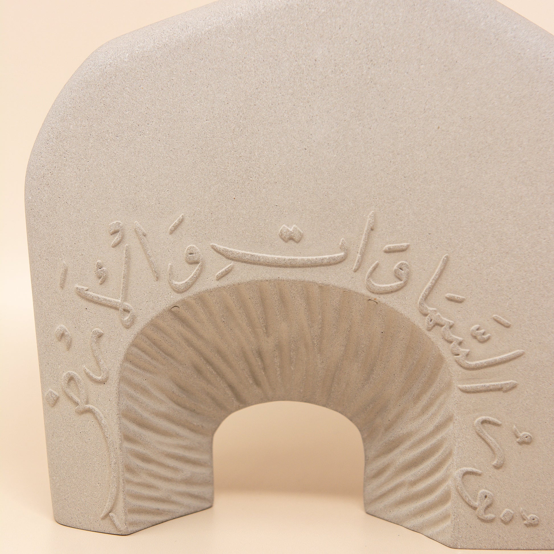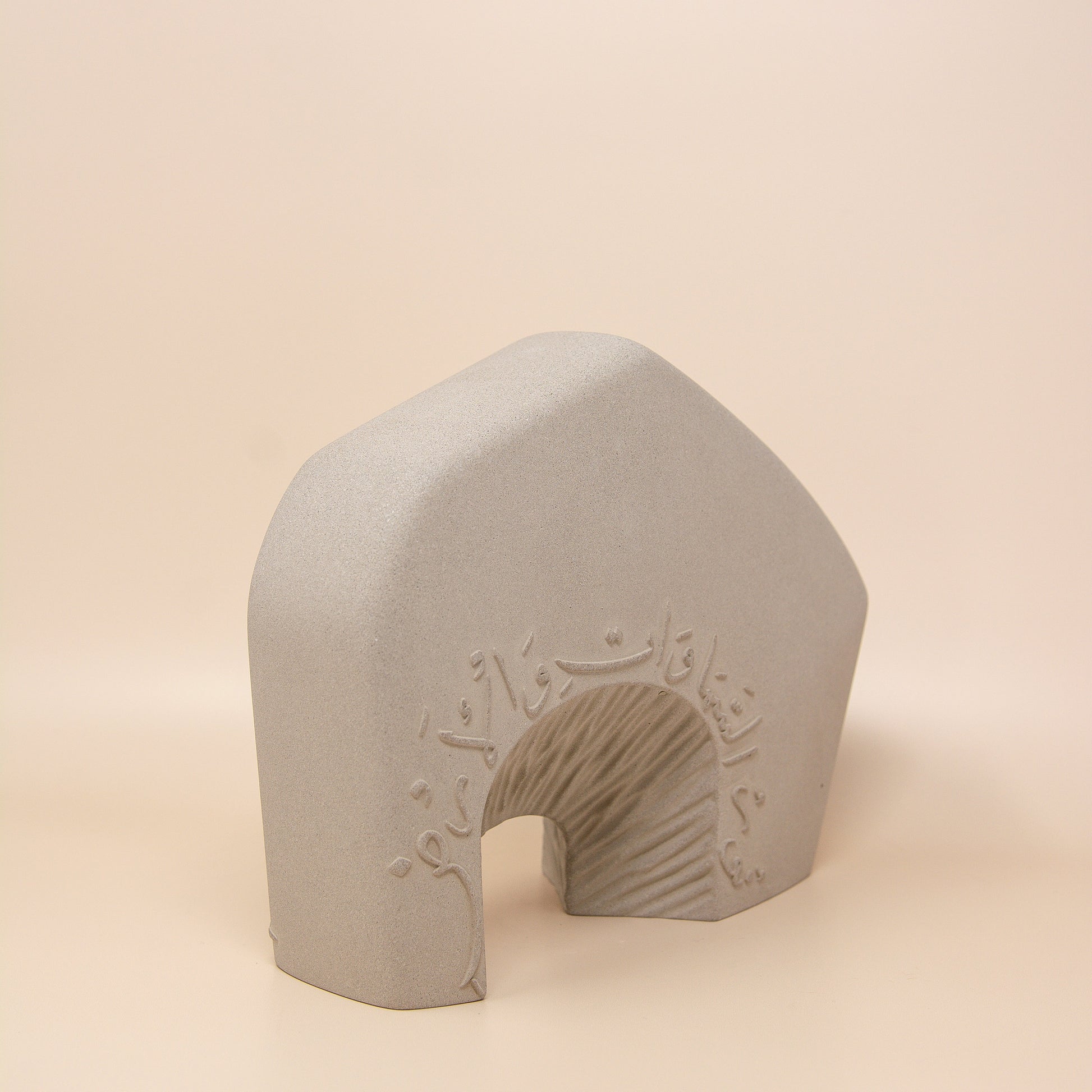 Introducing the Jabal An-Noor Sculpture: a natural stone-like terrazzo masterpiece with a modern bevelled design and stone-gray finish.