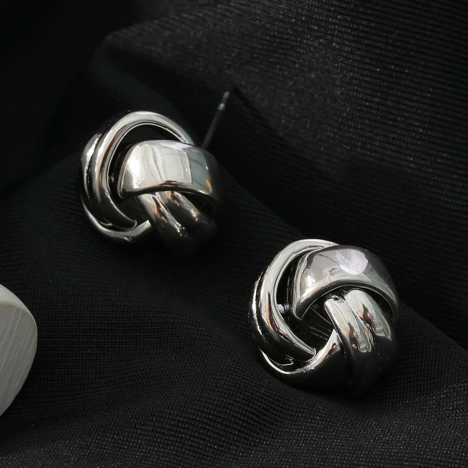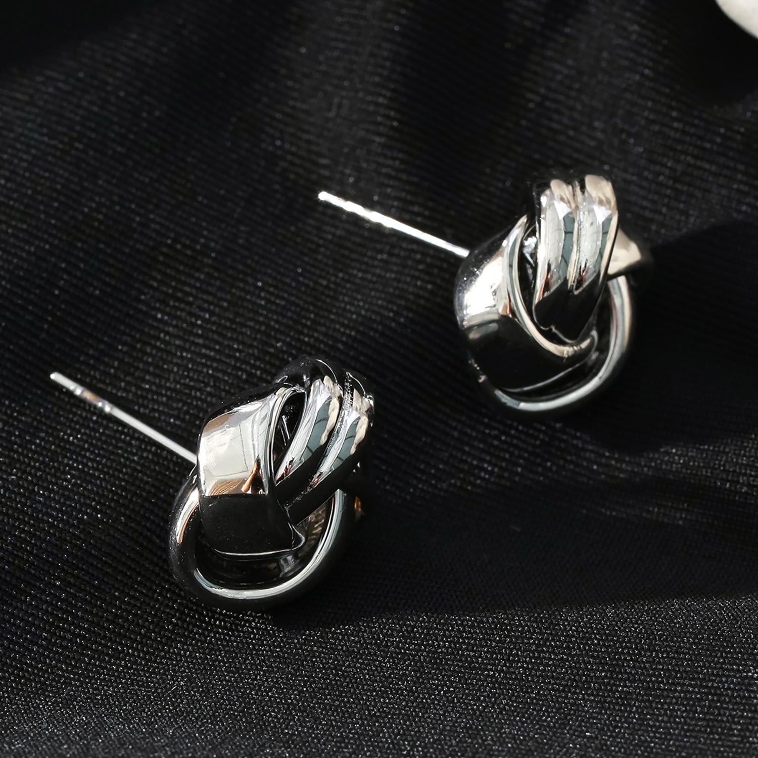 JATANI Silver Toned 18K White Gold: Contemporary Love-Knot Stud Earrings