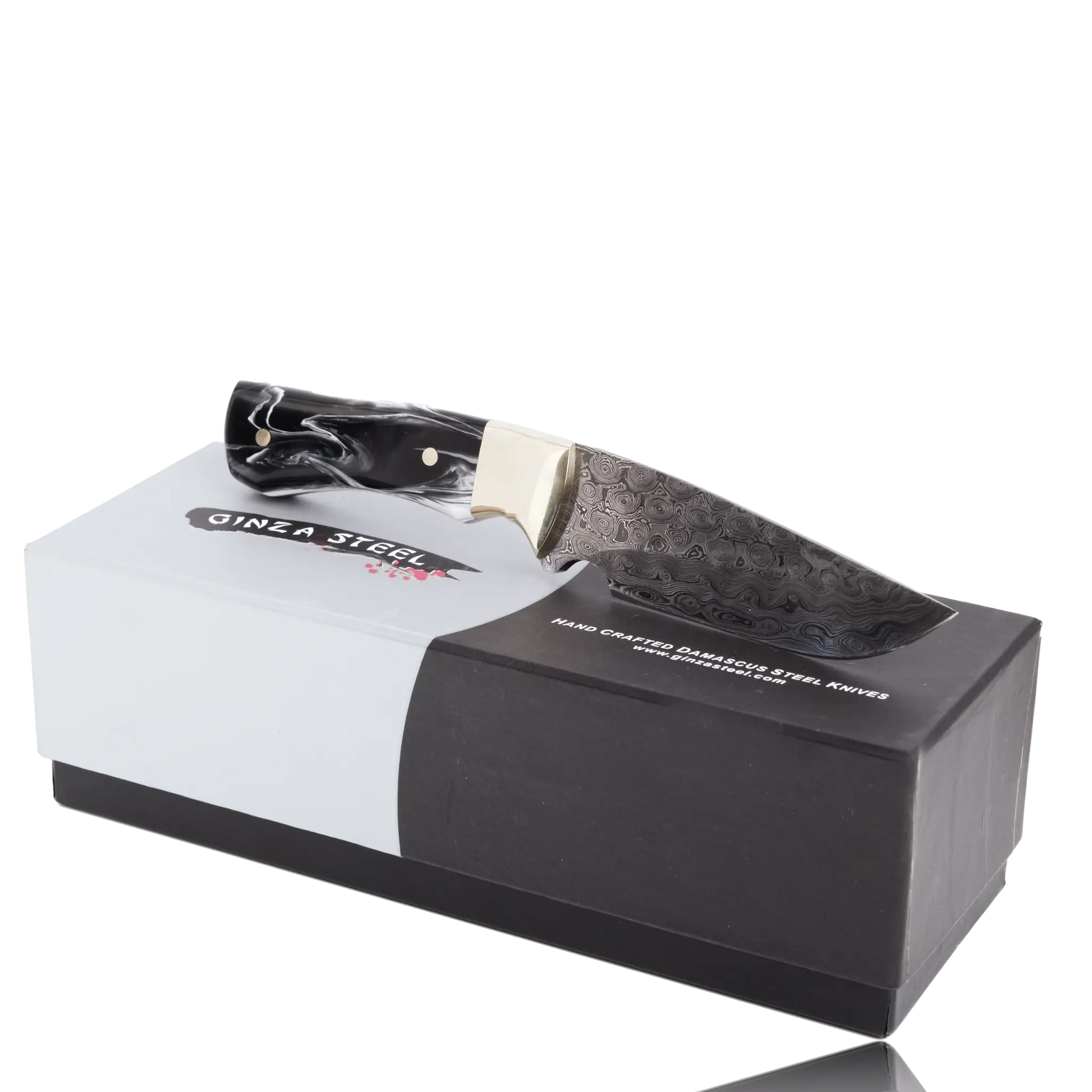 Built for hunters, outdoorsmen, and collectors, the Ginza Steel Kaito Skinner Knife offers unmatched precision with a 4-inch hand-forged Damascus steel blade, combining strength, sharpness, and beautiful layering. The compact profile makes it ideal for detailed skinning, field dressing, and utility tasks in the wild.
