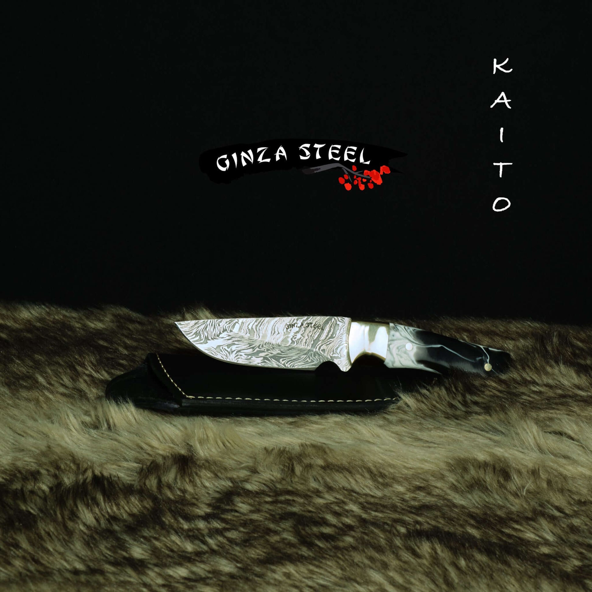 Ginza Steel Kaito Skinner Knife – 4” Damascus Steel Blade with Leather Sheath
