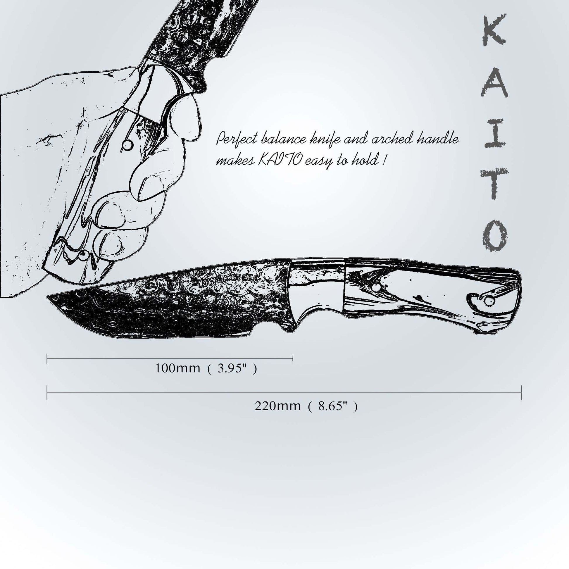 Kaito Damascus Steel Skinner Knife 4 inch blade with Original Leather Sheath