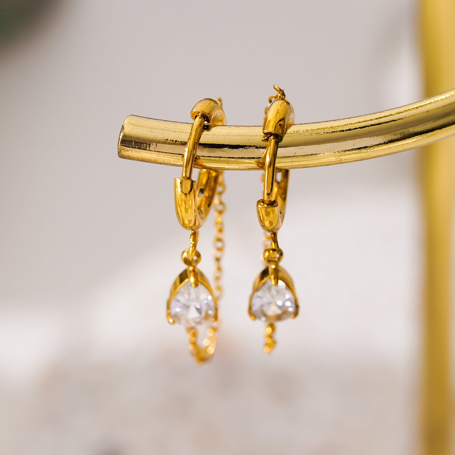 KAZUKA: Hoop Earrings with Pear-Shaped Zirconia Charm and Dainty Chain