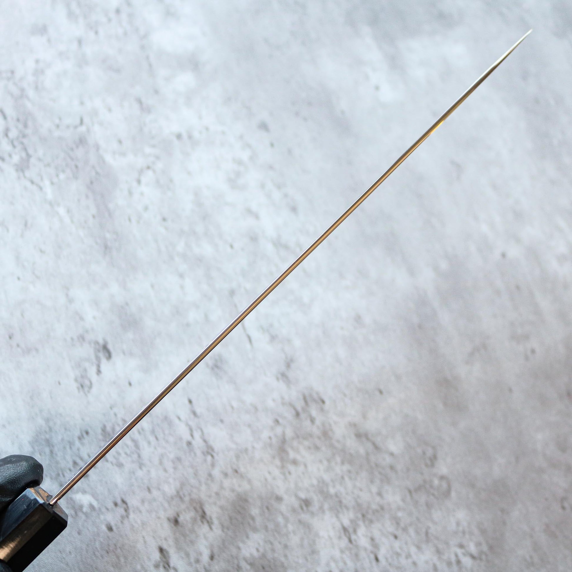 The word "Sujihiki" translates to "flesh slicer". The long, slender blade allows the user to make long drawing strokes, which makes it incredibly adept at slicing and reduces the amount of sawing needed to get through ingredients. They are most commonly in the 240 mm (10 inches) to 300 mm (12 inches) range. The Sujihiki has a very specific use case, so if you're looking for a knife that is capable of slicing and chopping vegetables, we would recommend a Gyuto or Kiritsuke.