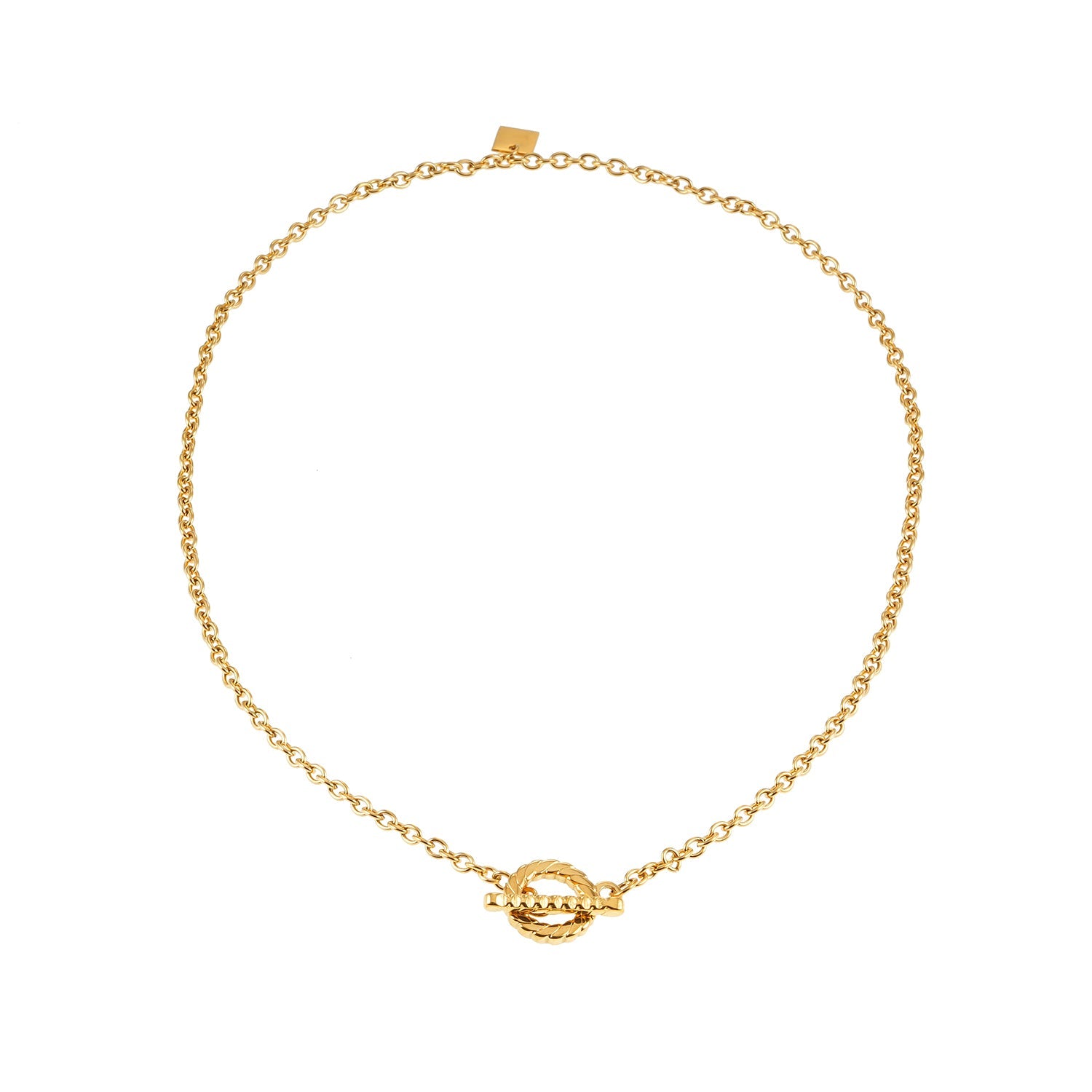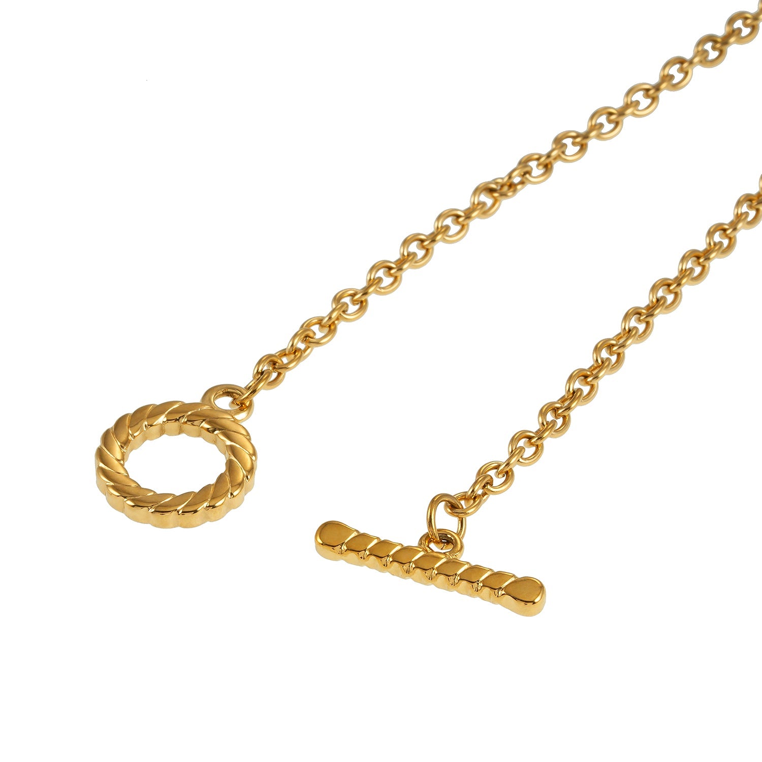 KETCHIGAN: Classic Chain with Textured T-Bar & Ring Pendant Gold Necklace
