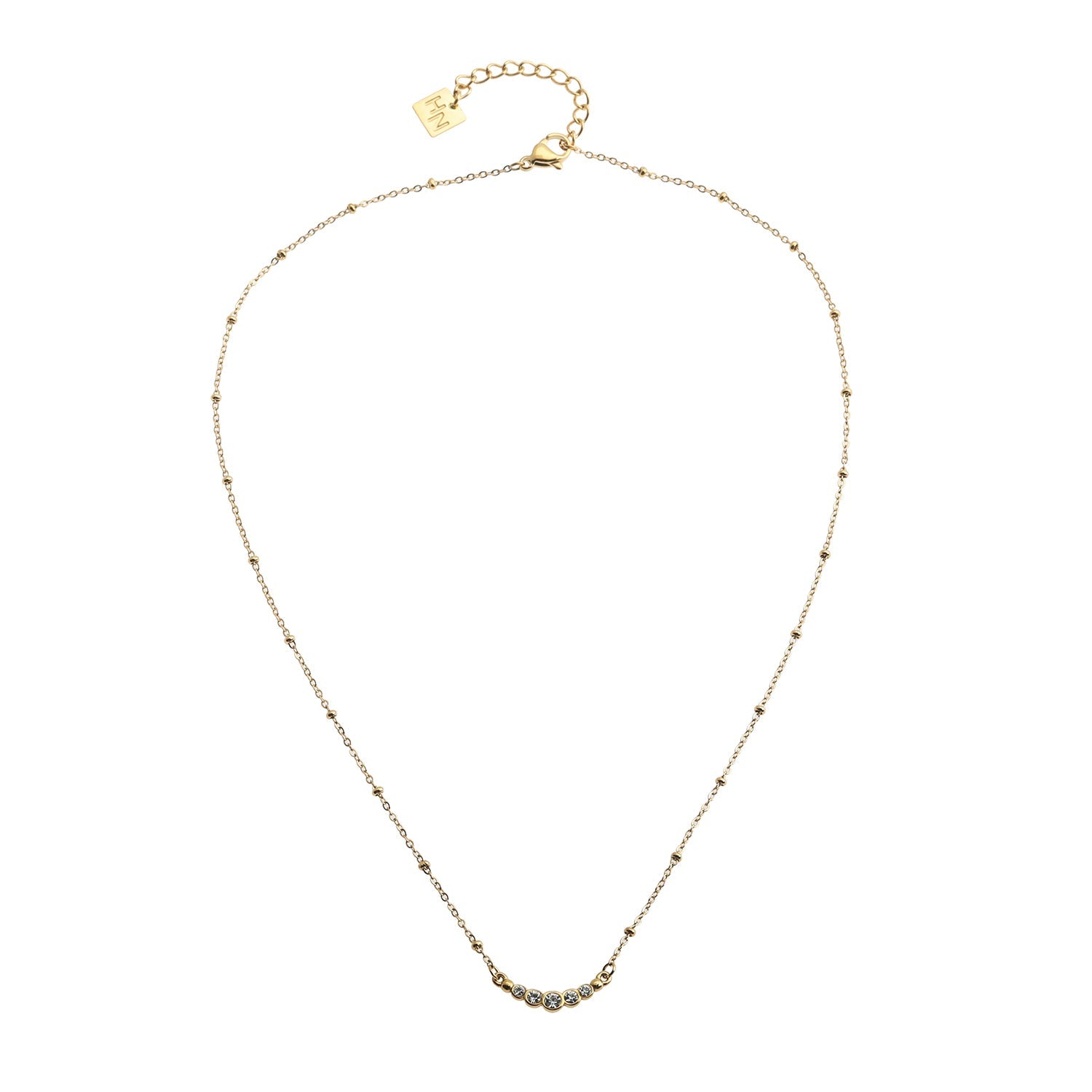 KIMI Beaded Gold Chain with Dainty Pavé-Set Zirconia Pendant