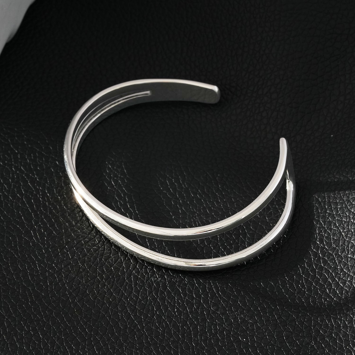 LILIANNA: Minimalist-Chic Double Band Bracelet in Silver Toned White Gold