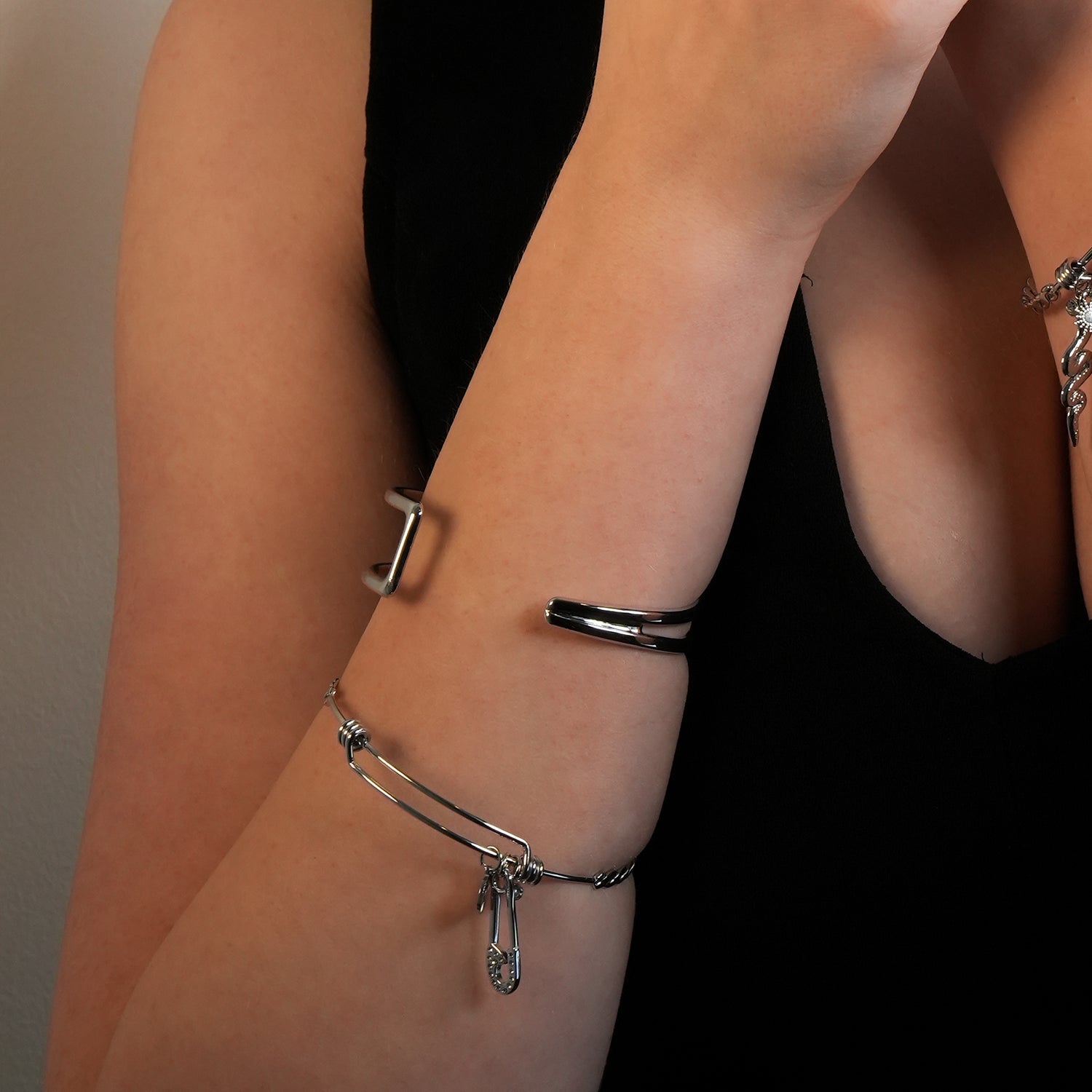 Add a touch of industrial edge and modern elegance to your jewelry collection with our abstract shaped bands bracelet. Perfect for any occasion, this bracelet is a testament to innovative design and superior craftsmanship. Whether you're dressing up for a special event or adding a statement piece to your everyday look, this bracelet is the ideal accessory to showcase your unique style.