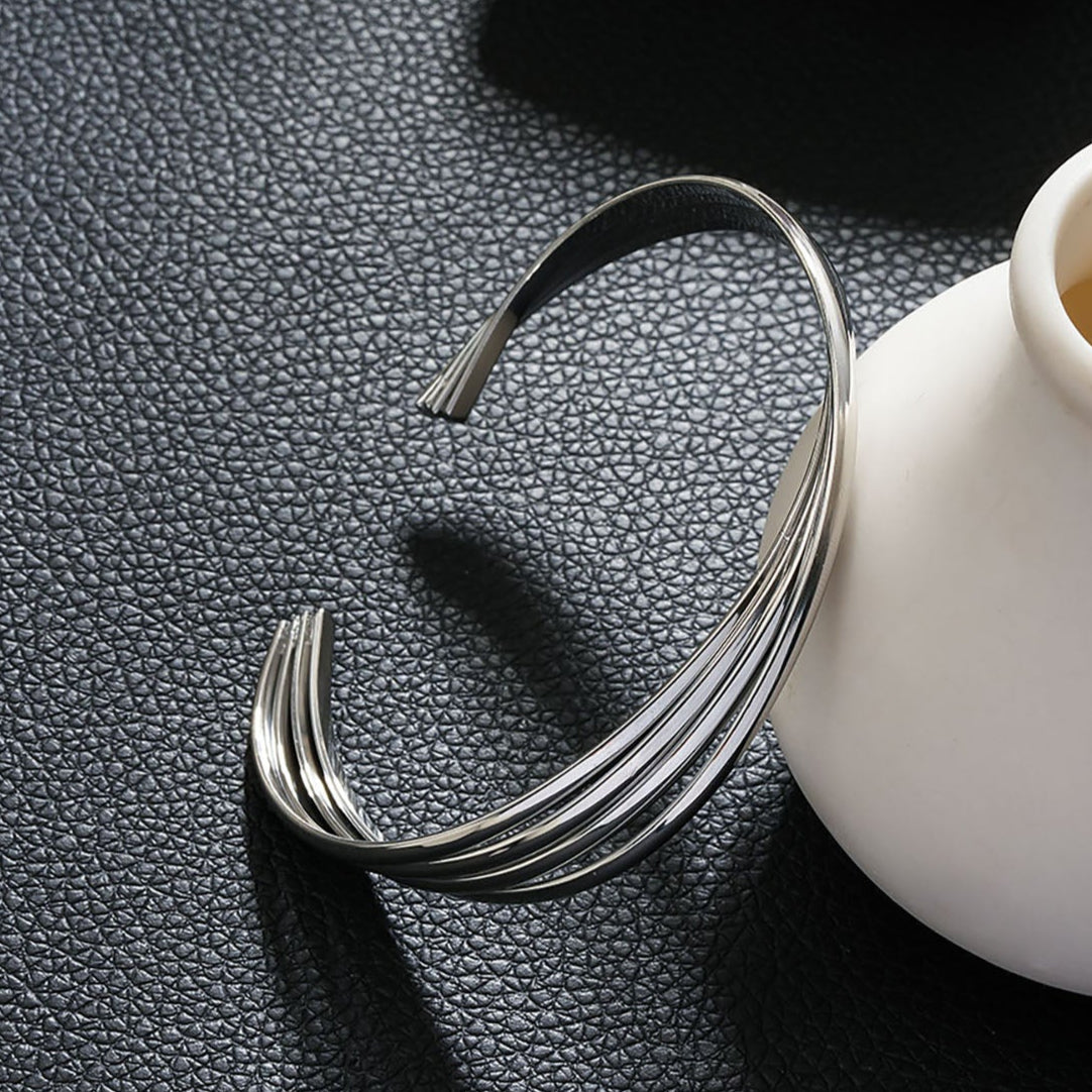 LIVIA Silver (White Gold): Geometric Lines Bracelet