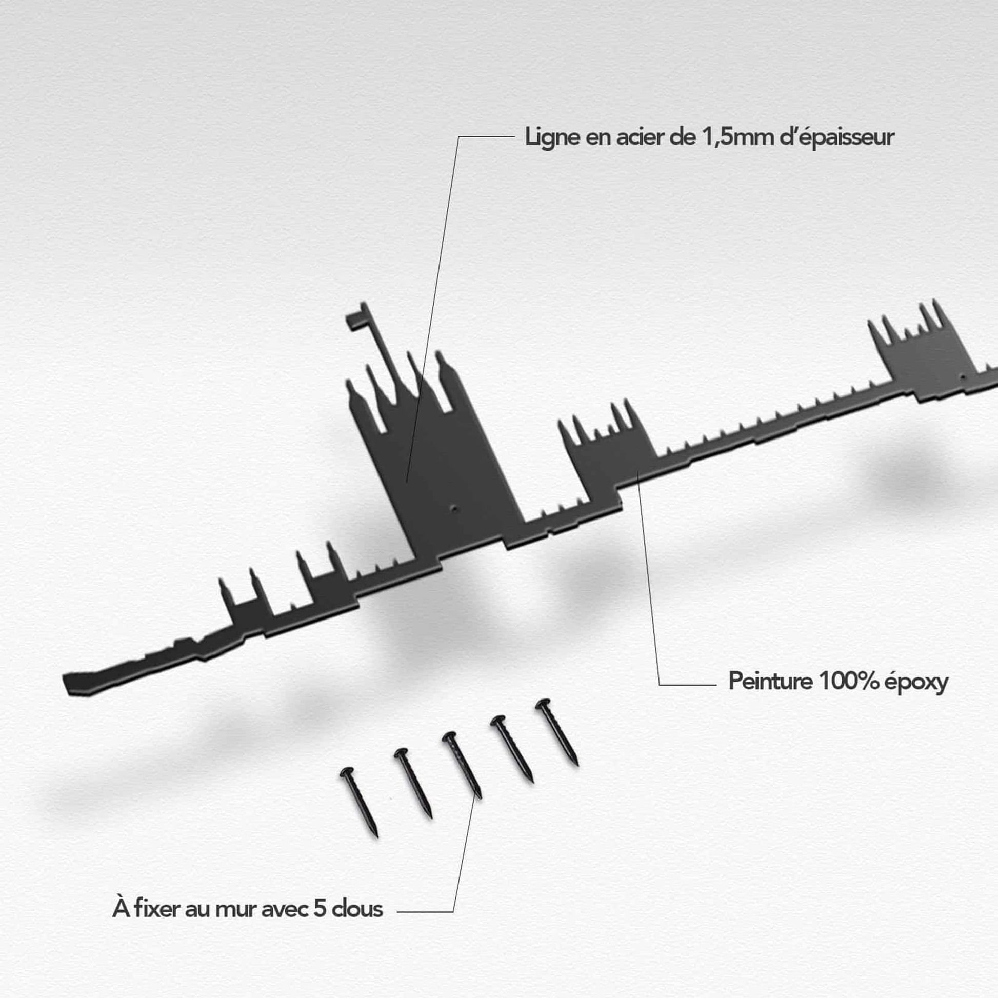 The London Line beautifully captures the city's iconic skyline, available in various sizes (19 cm, 50 cm in both black and golden, and 125 cm). This collection embodies London's rich history and architectural marvels, offering a stylish and sophisticated tribute to the city's landmarks. Perfect for London enthusiasts wishing to add a touch of elegance and urban charm to their space.