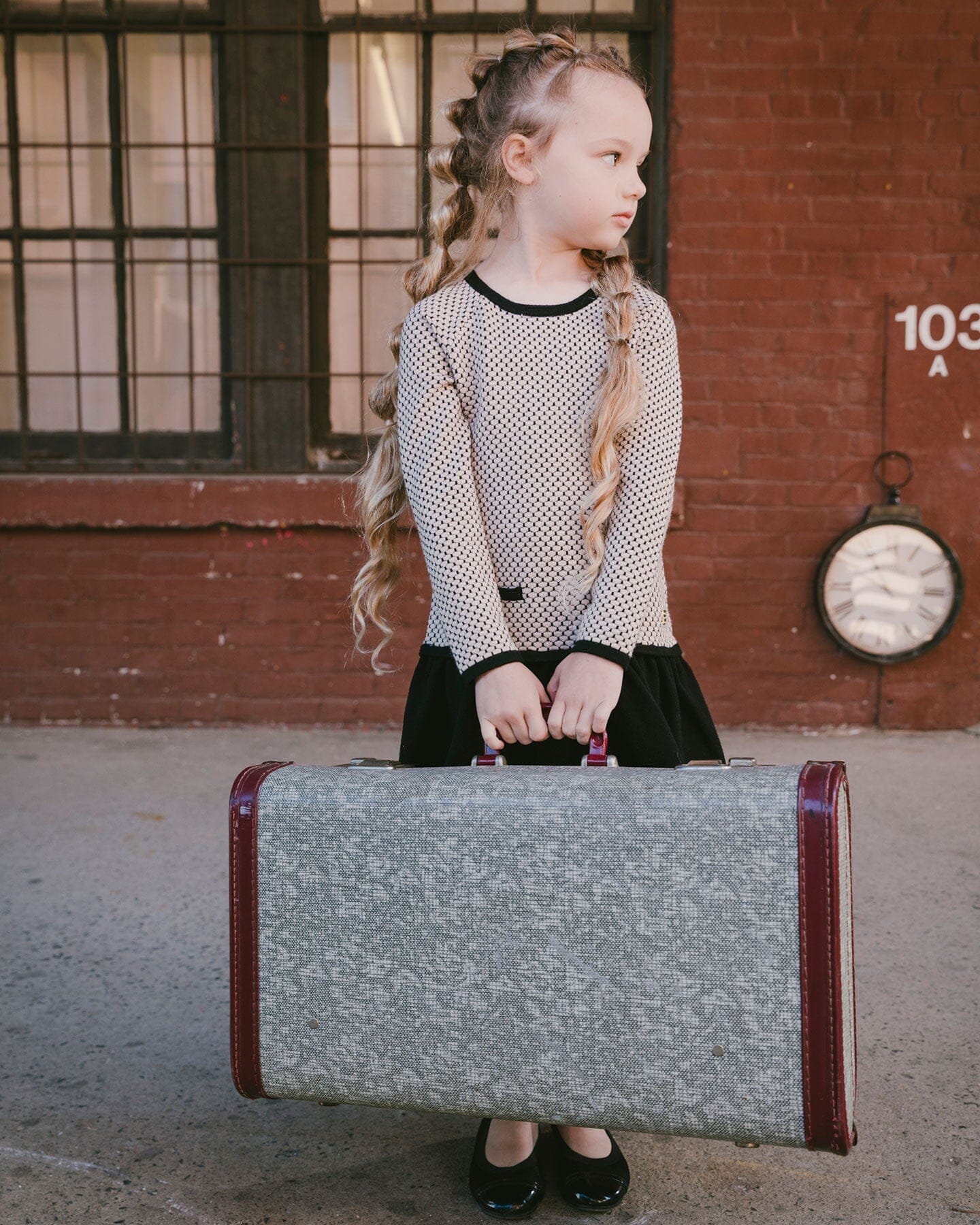 Dressed up or dressed down, this knitted sweater dress has a timeless look that never goes out of style. This drop waist dress features a two-tone silhouette with a long sleeve bodice, a round neckline, and a flared drop waist skirt. Contrast welt pockets and solid rib knit trim at the neck and cuffs add the perfect finishing touches!