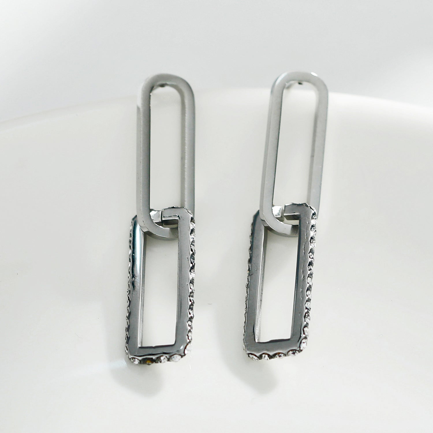 LUCIANA Pavé Zirconia Twin Paper Clip Silver Earrings