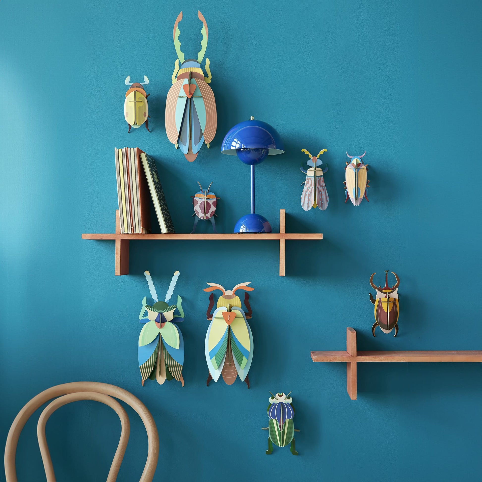 The Lunar Jewel Beetle by Studio Roof brings vibrant, flamboyant beauty to your home decor. Inspired by real-life beetles, this 3D wall art piece looks like it stepped right off the runway with its striking colors and unique design.