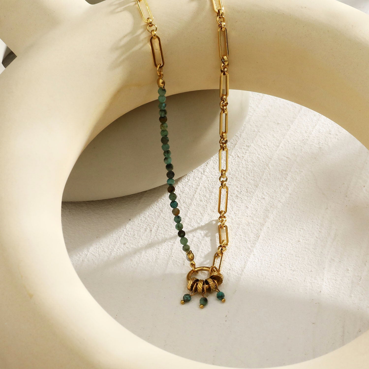 LYON: Boho-Chic African Turquoise Natural Stone Charm Pendant Gold Necklace