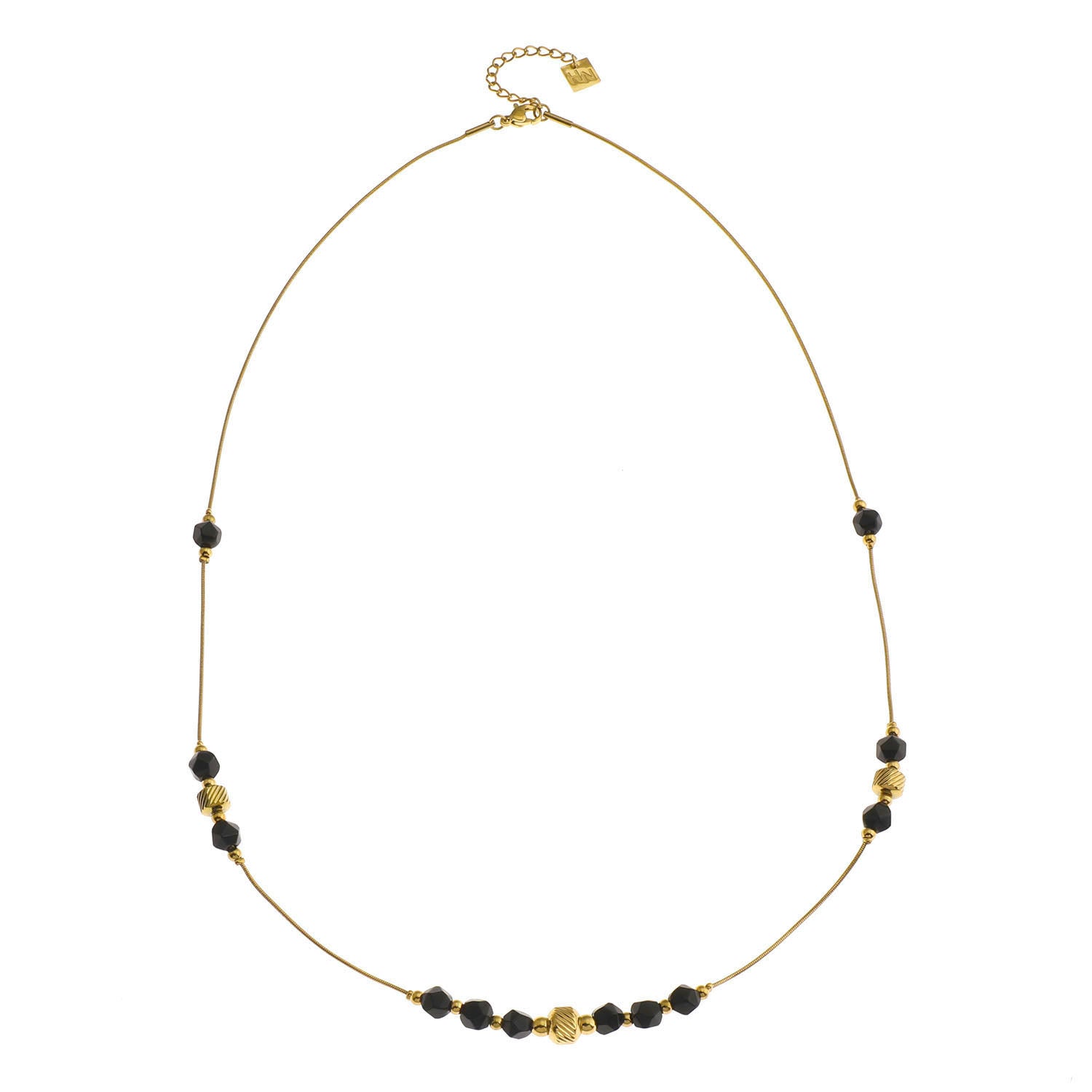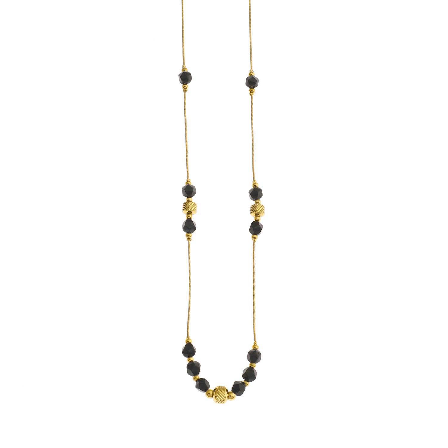 Style: MARA 202207 Black Obsidian & Gold Beaded Chain Necklace.
