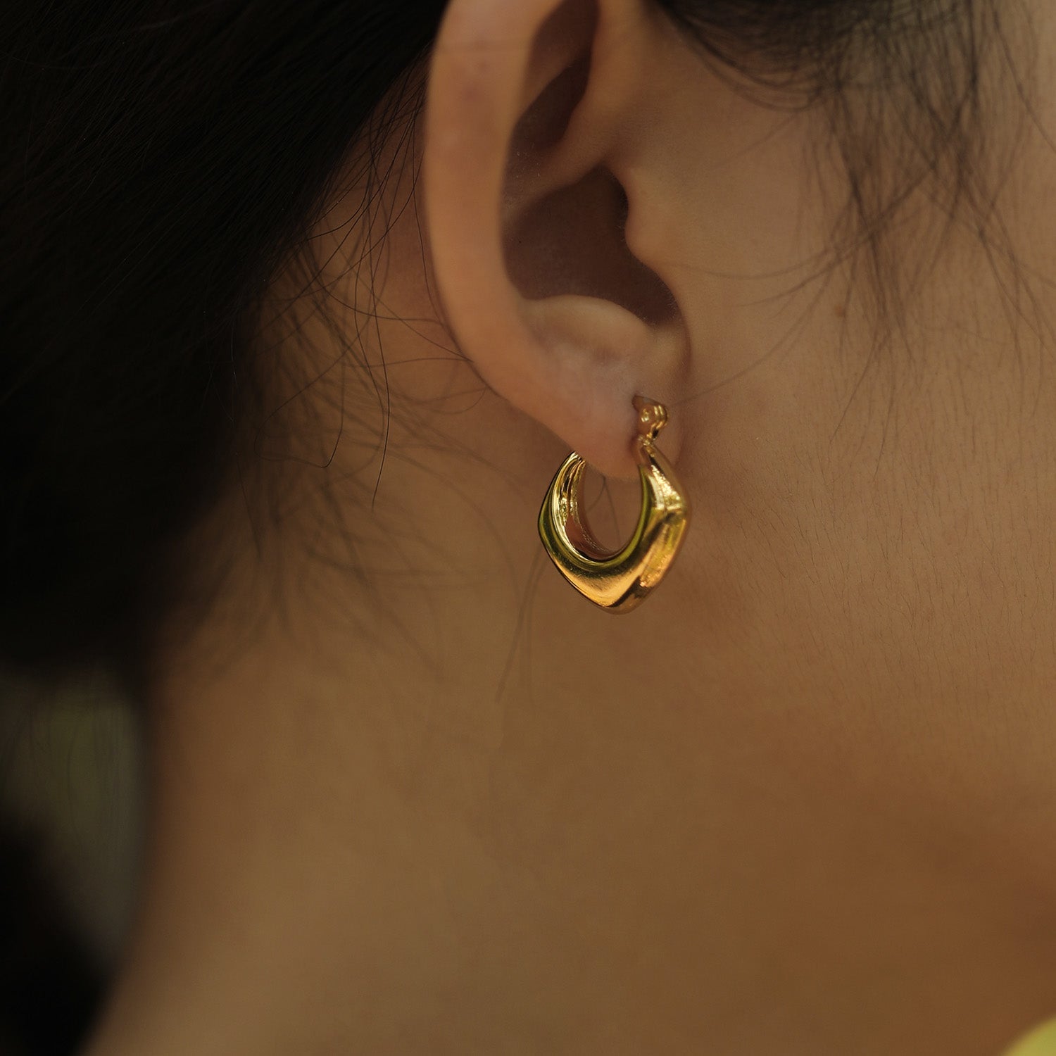 MARIYA: Squared Rounded Hoop Earrings Gold