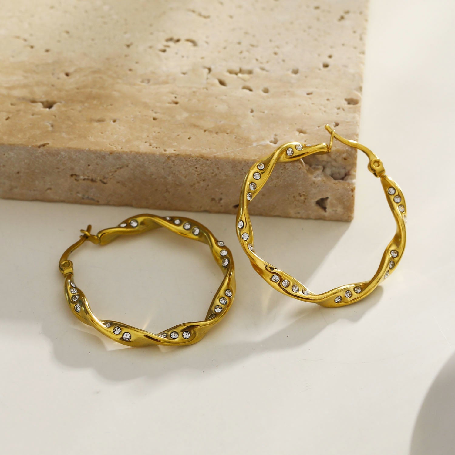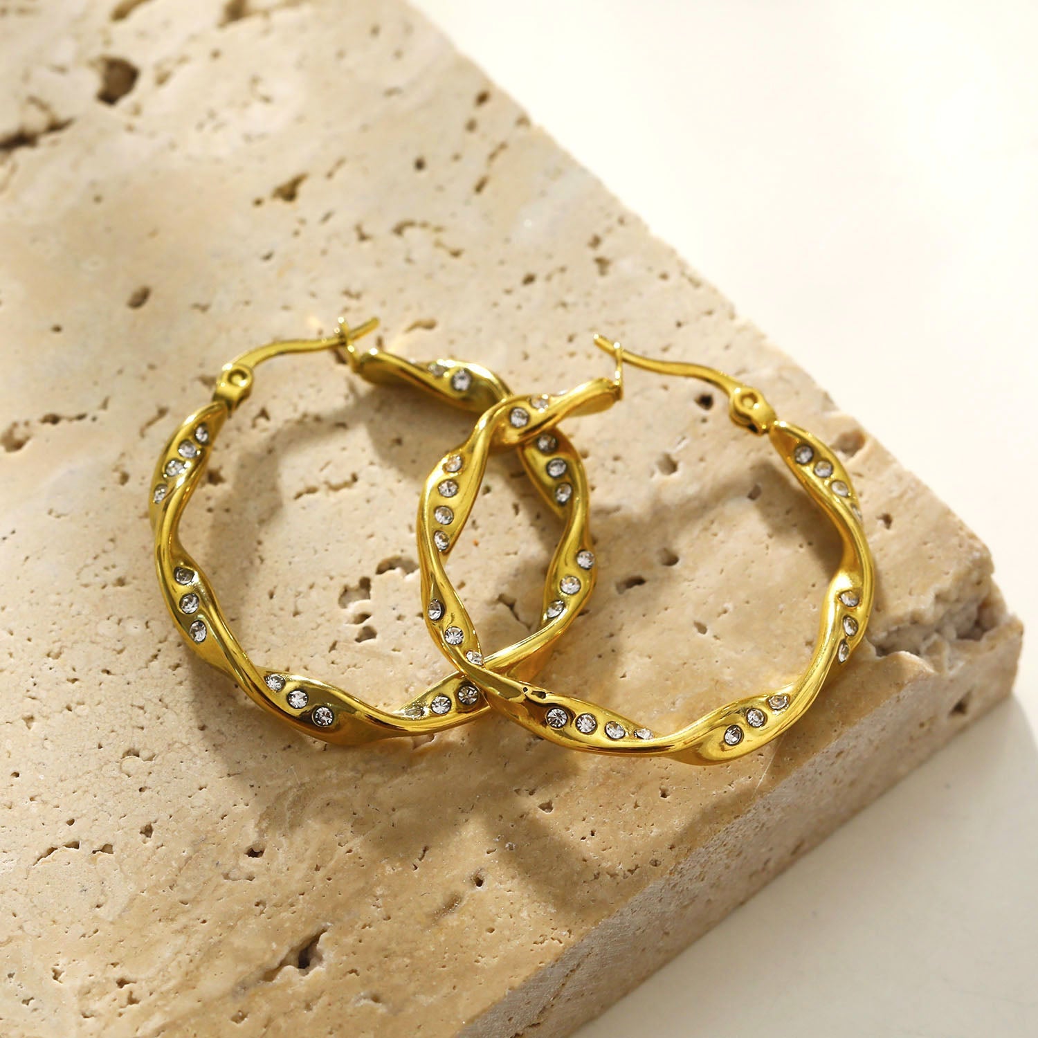 MARTHA: Twisted Hoop Earrings with Zirconia Embellished Sides