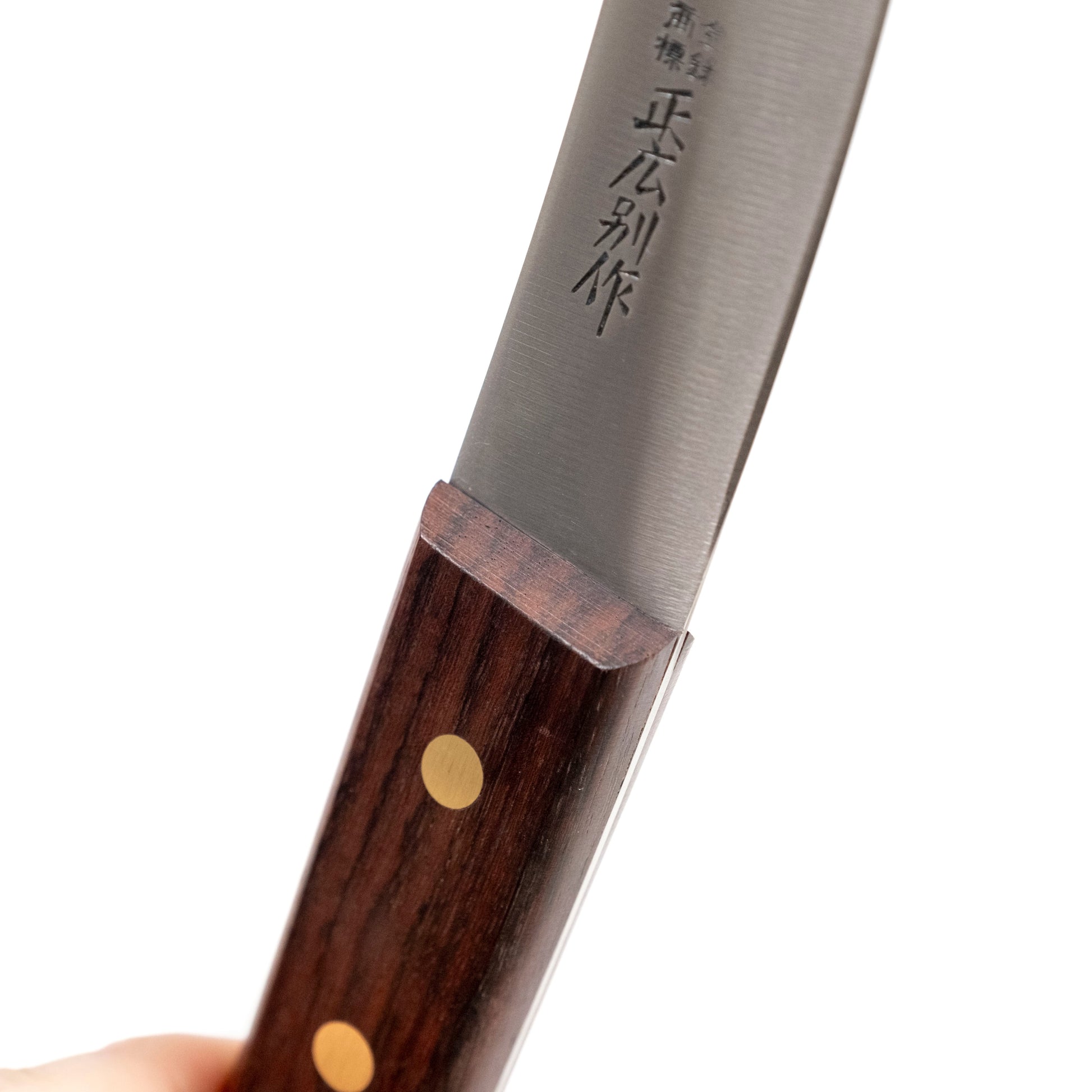 Masahiro knives come to us from Seki City, Gifu Prefecture, Japan -- a region renowned for its production of kitchen knives. The Mono construction Semi-Stainless Steel is a unclassified stainless steel made for Masahiro, designed for everyday kitchen use. These blades carry comfortable rosewood western style handles and are excellent value, given they are factory made knives, they are made efficiently and the result is a consistent product, at an approachable price point for the home cook and professional chef alike!