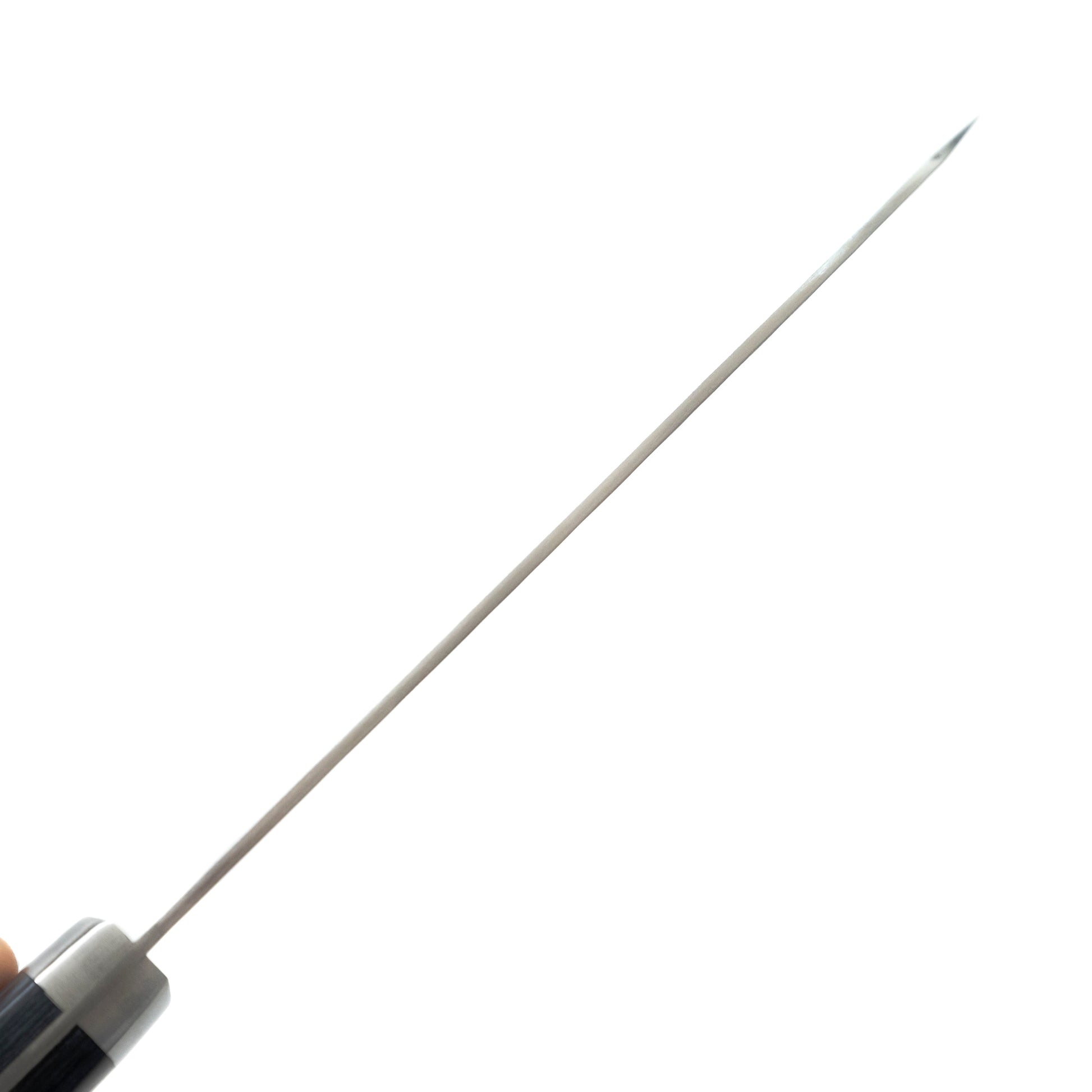 Masutani-san works in a small shop behind his house located in the famous Takefu Knife village. He primarily works on his own but gets help from his two grandson's on the weekends and his Son in law who he would like to take over the business when he retires. He is a master sharpener and takes great pride in making sure every knife that leaves his shop is razor sharp. He makes beautiful and affordable knives that we highly recommend to home users looking for something that performs well, won't break the bank and is easy to maintain.