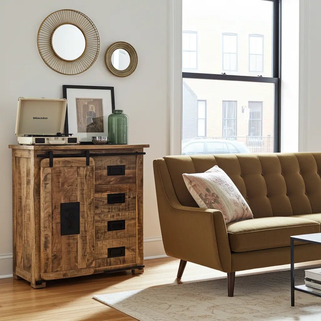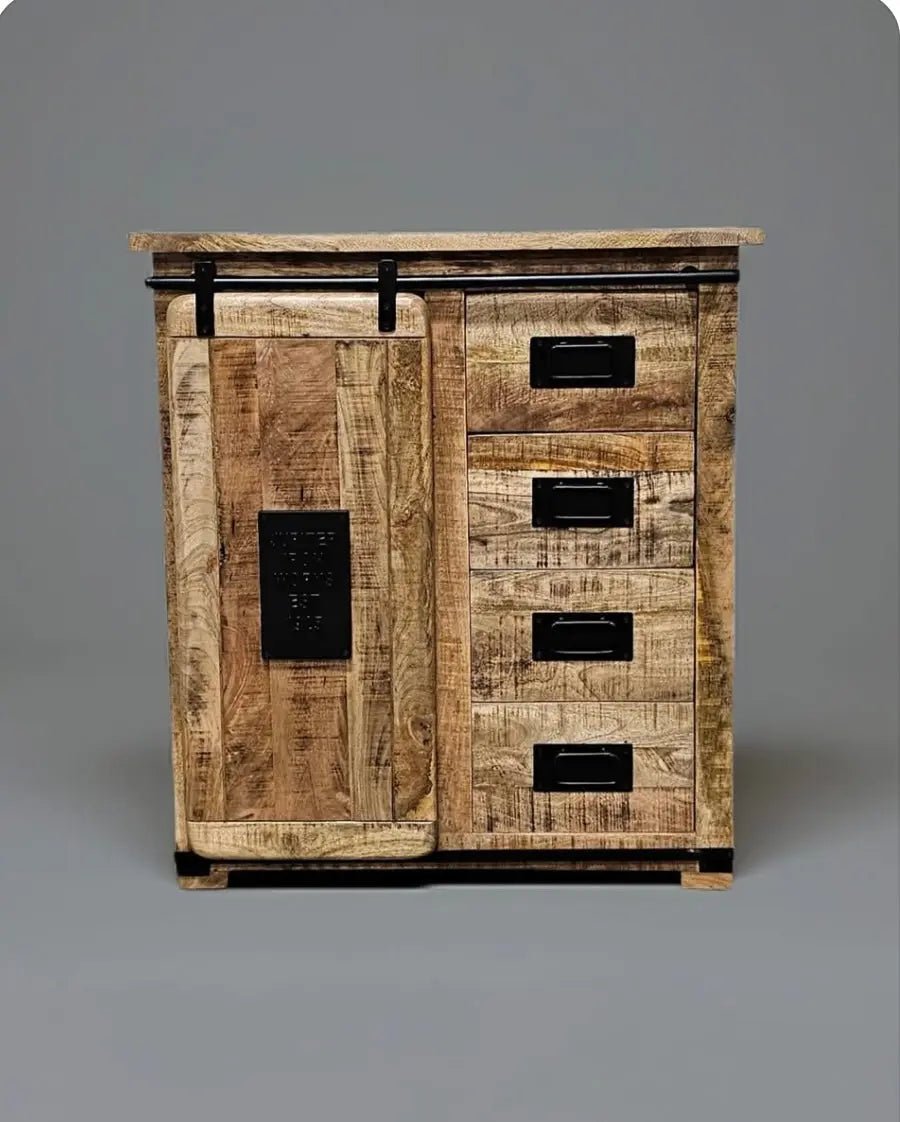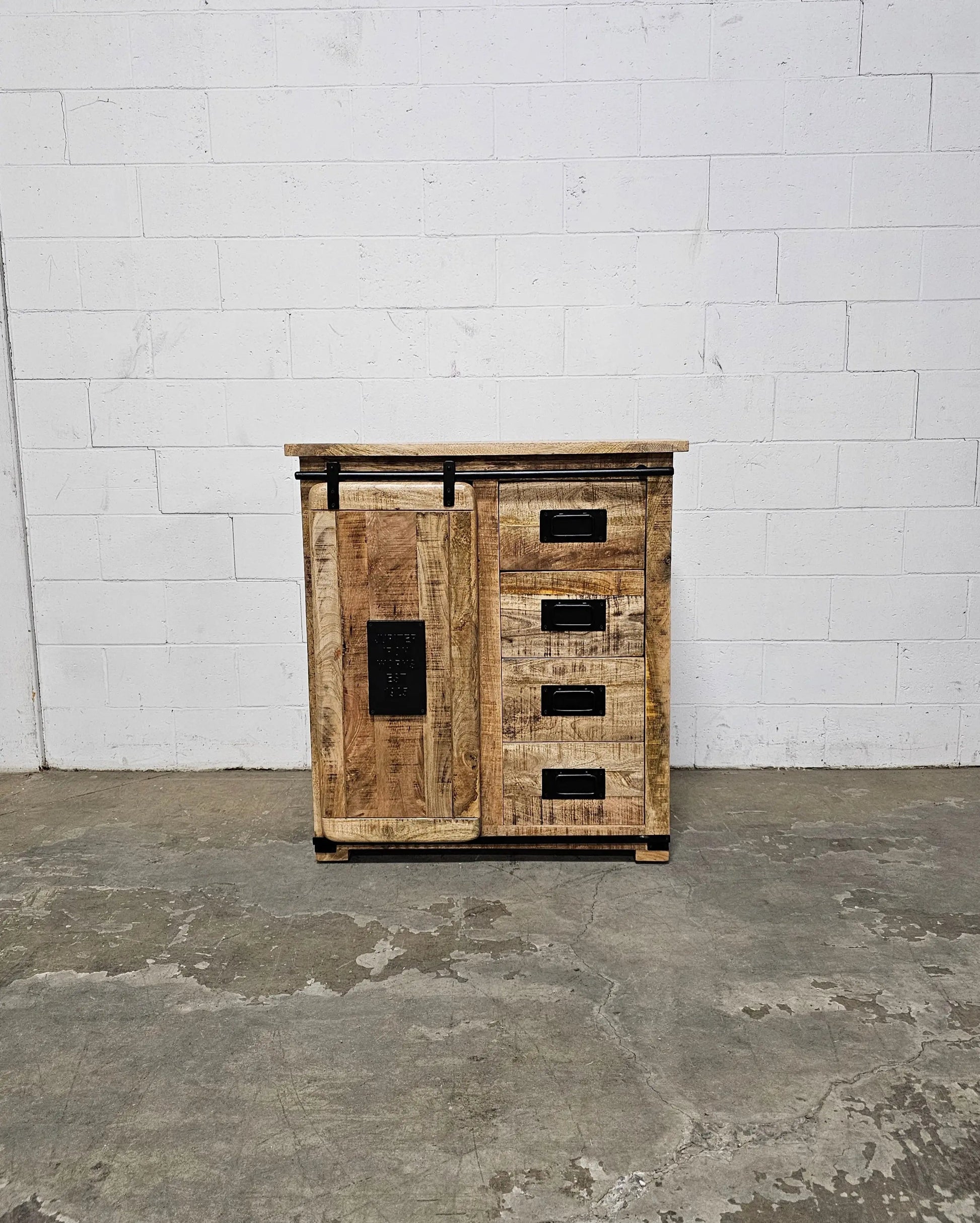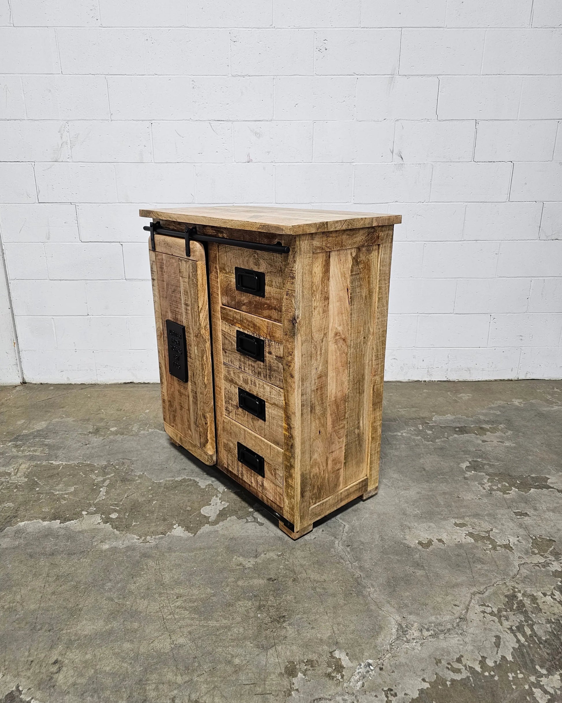 Meuble Commode Farmhouse en bois de manguier brut porte coulissante