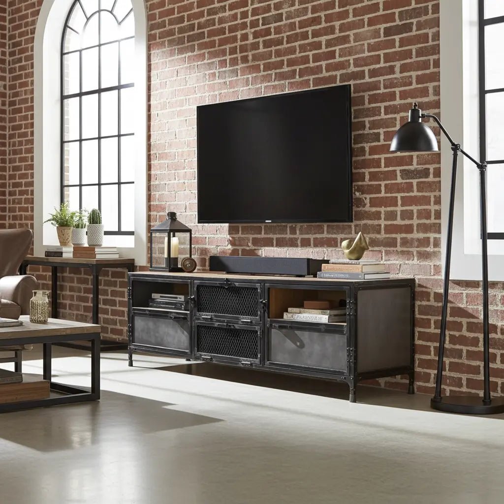 Meuble Télé Ibiza en bois de manguier et acier brut