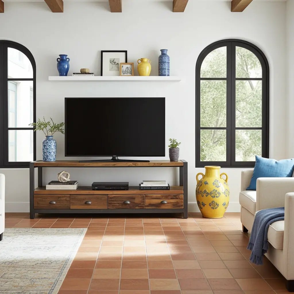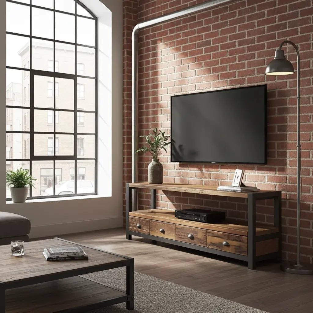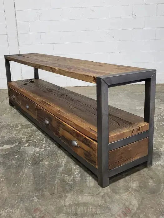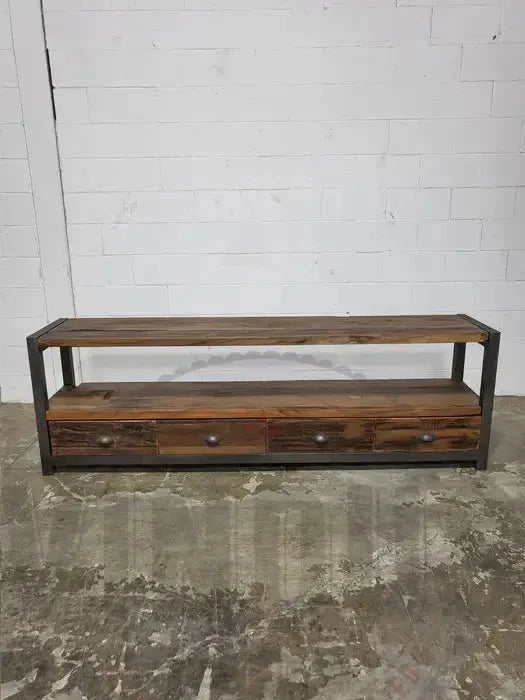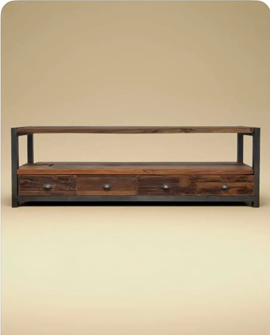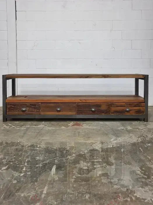 Meuble tv industriel bois Recyclé et acier avec 4 tiroirs