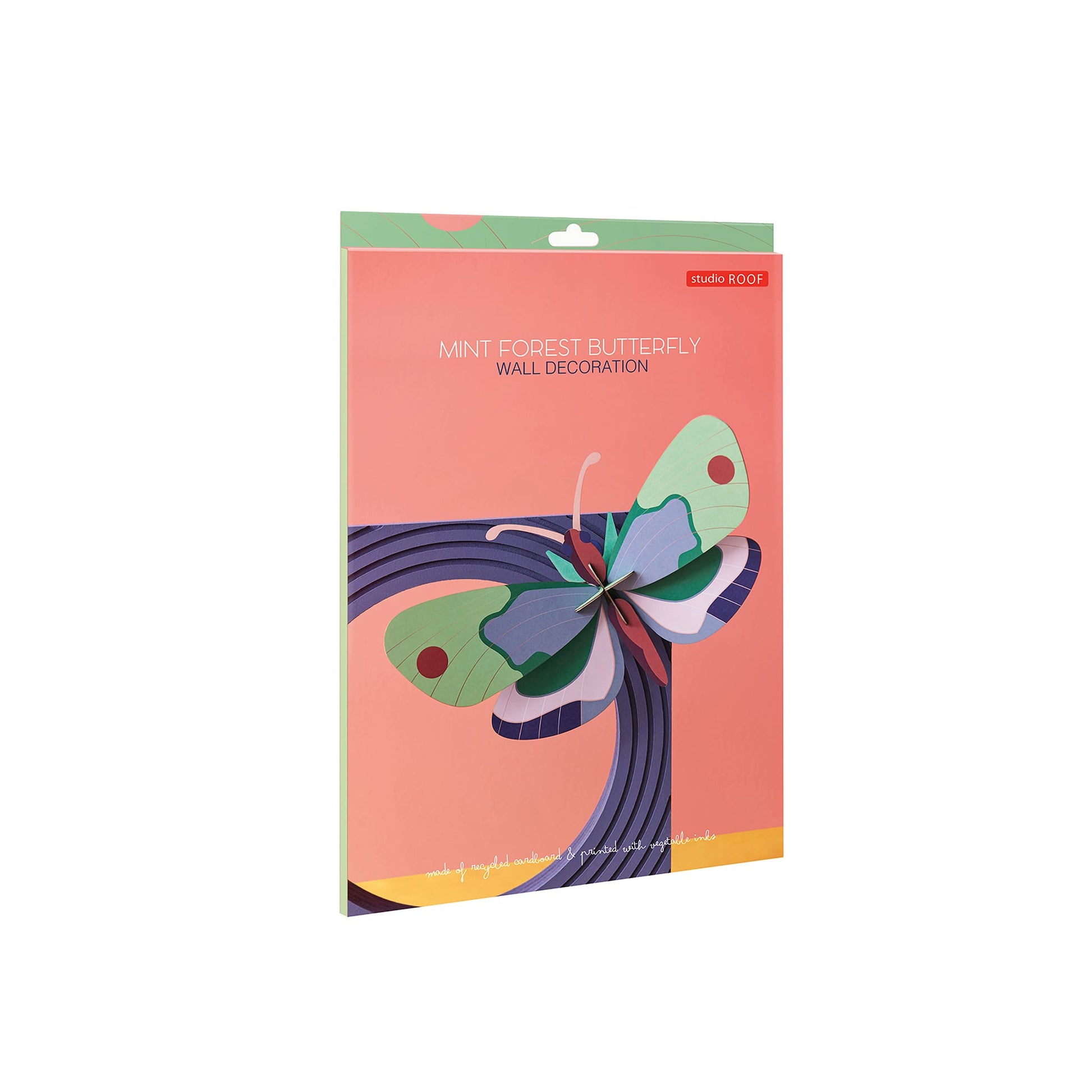 The Mint Forest Butterfly by Studio Roof brings the enchanting beauty of nature into your home with its vibrant, delicate design. Crafted from recycled cardboard and printed with vegetable inks, this eco-friendly 3D wall art piece captures the essence of a butterfly in flight, allowing you to admire its beauty for as long as you like.