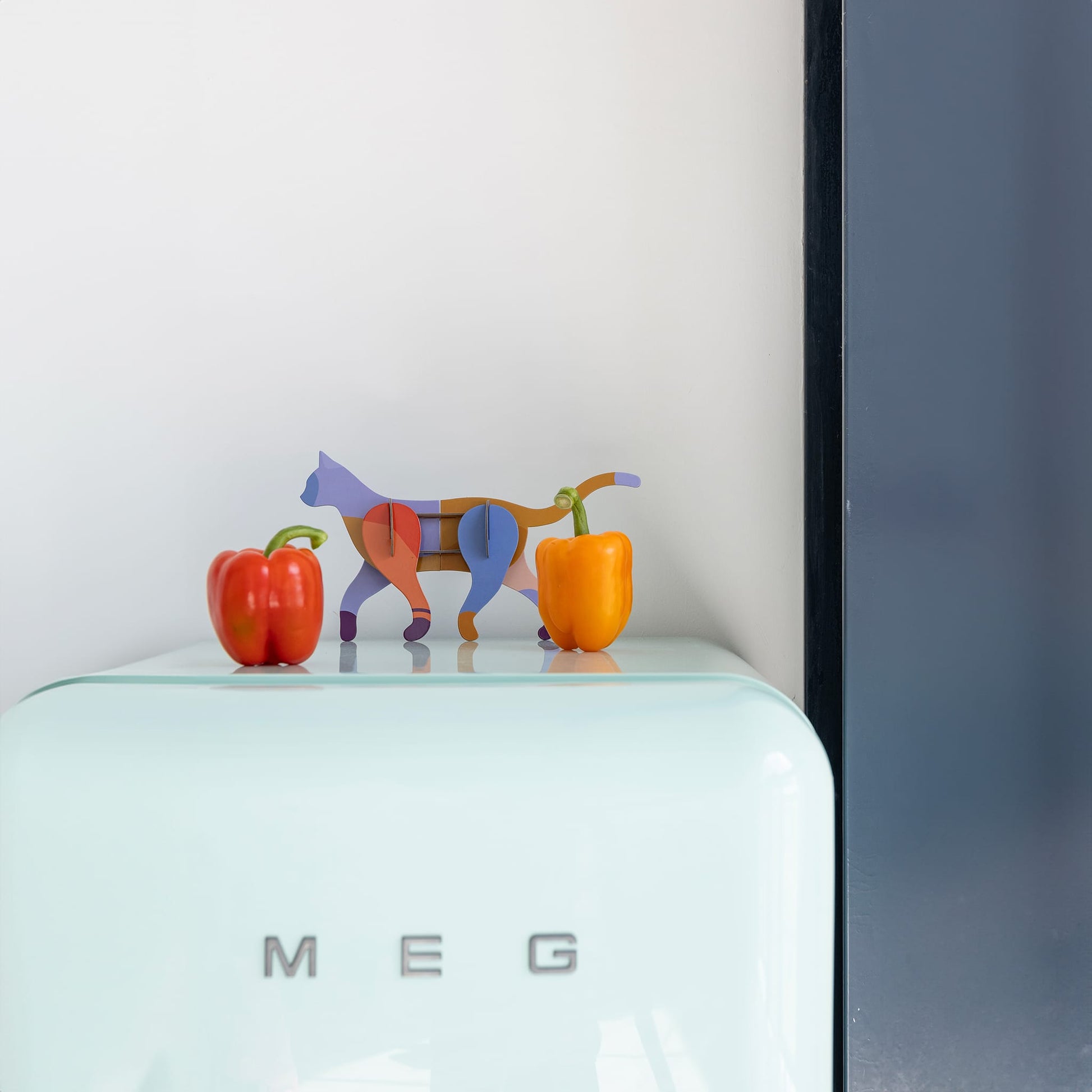 Arriving flat-packed, Missis Mochi is easy to build and adds a whimsical touch to any room. Measuring 30.5 x 7 x 17 cm (12" x 2.7" x 6.6") when assembled, it’s the perfect combination of sustainability and creativity. Ideal as a fun ornament or a unique piece of 3D wall art, Missis Mochi is a purrfect addition to eco-conscious Canadian homes.